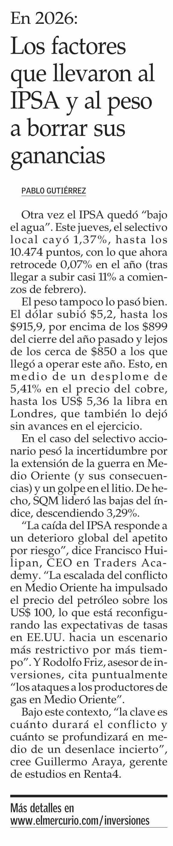 En 2026: Los factores que llevaron al IPSA y al peso a borrar sus ganancias