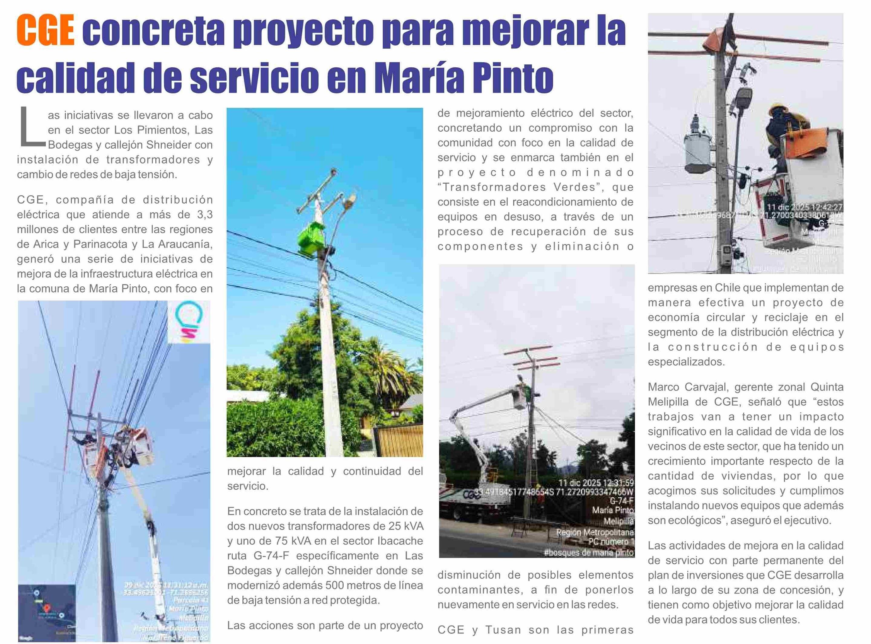CGE concreta proyecto para mejorar la calidad de servicio en María Pinto