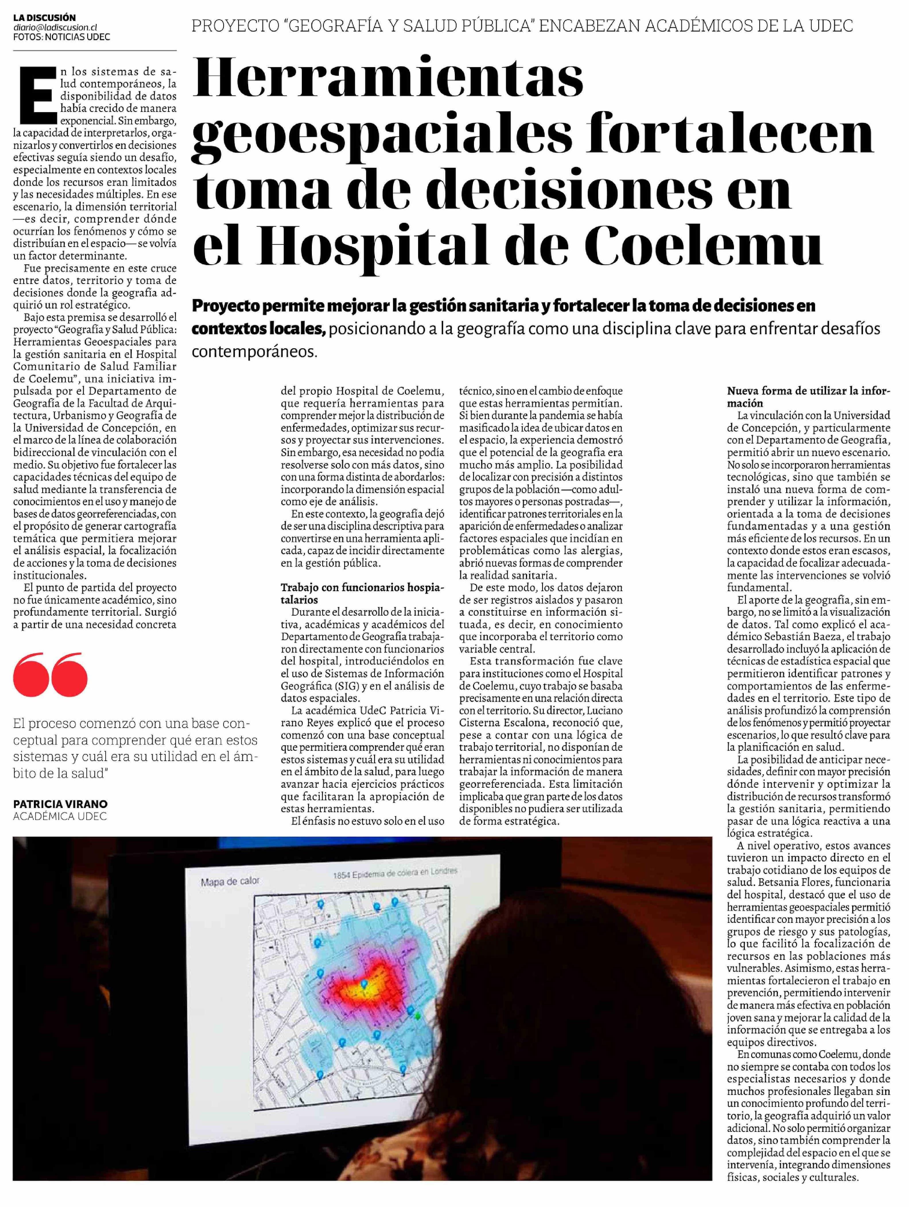 Título: Herramientas geoespaciales fortalecen toma de decisiones en el Hospital de Coelemu