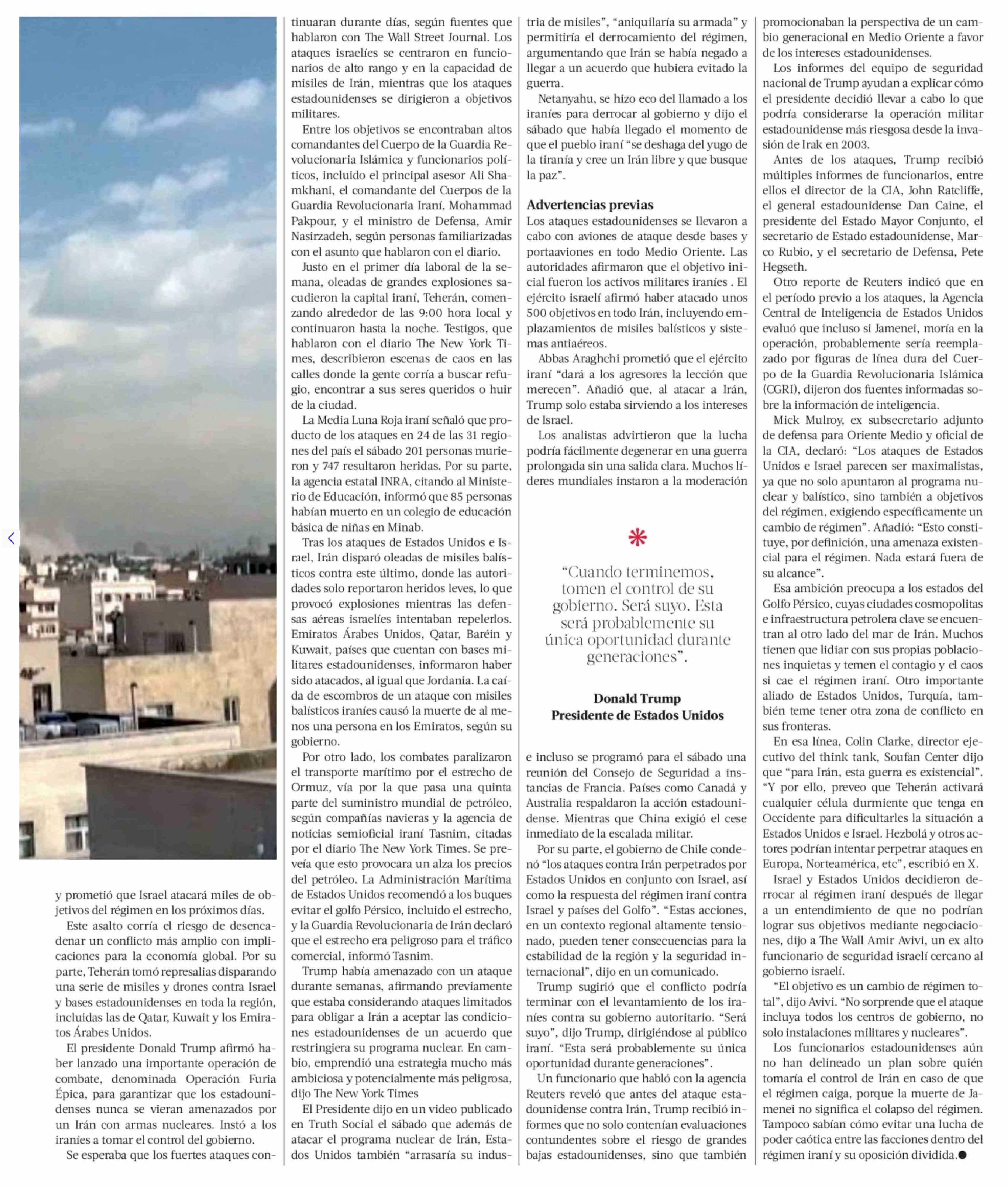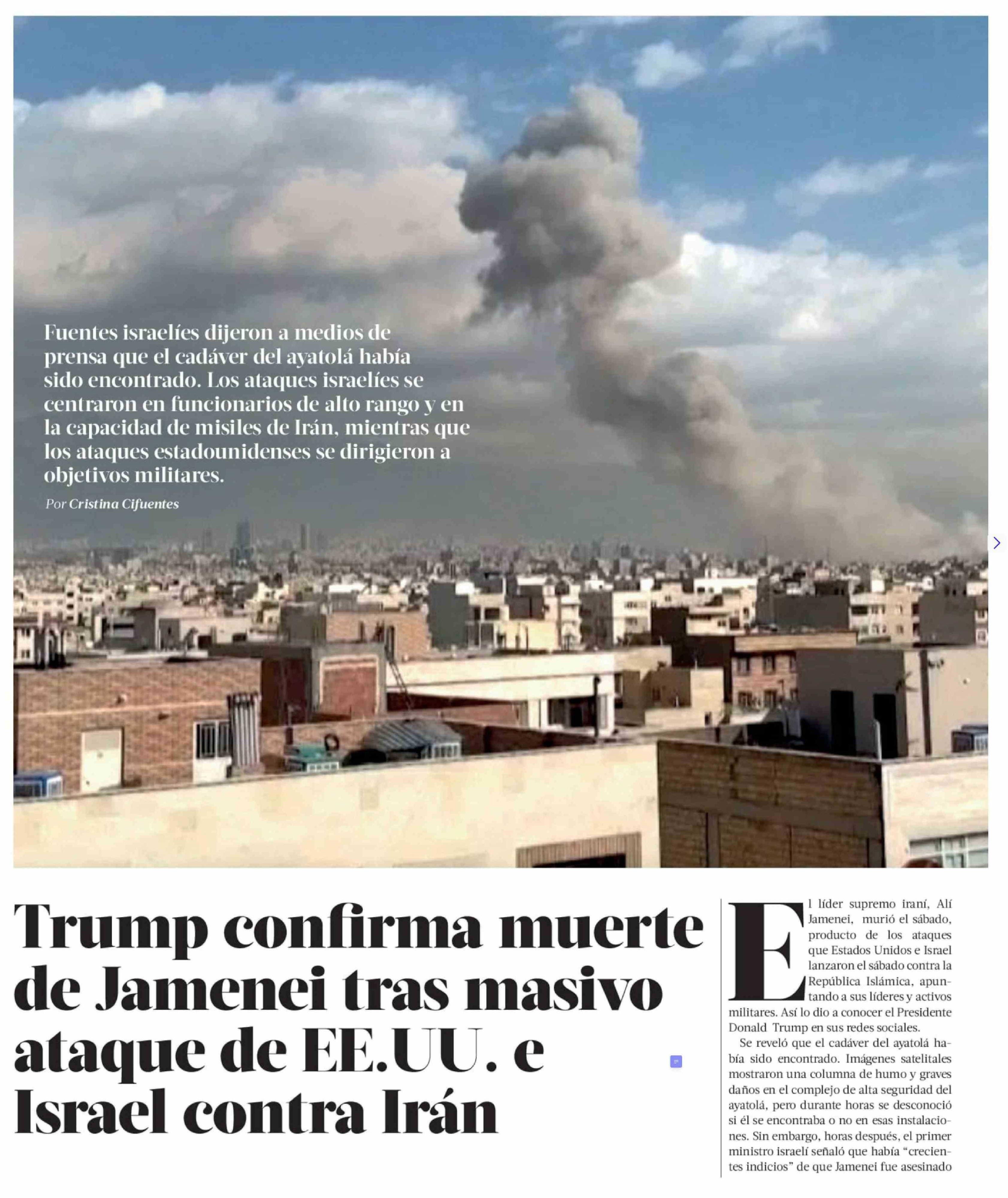 Trump confirma muerte de Jamenei tras masivo ataque de EE.UU. e Israel contra Irán