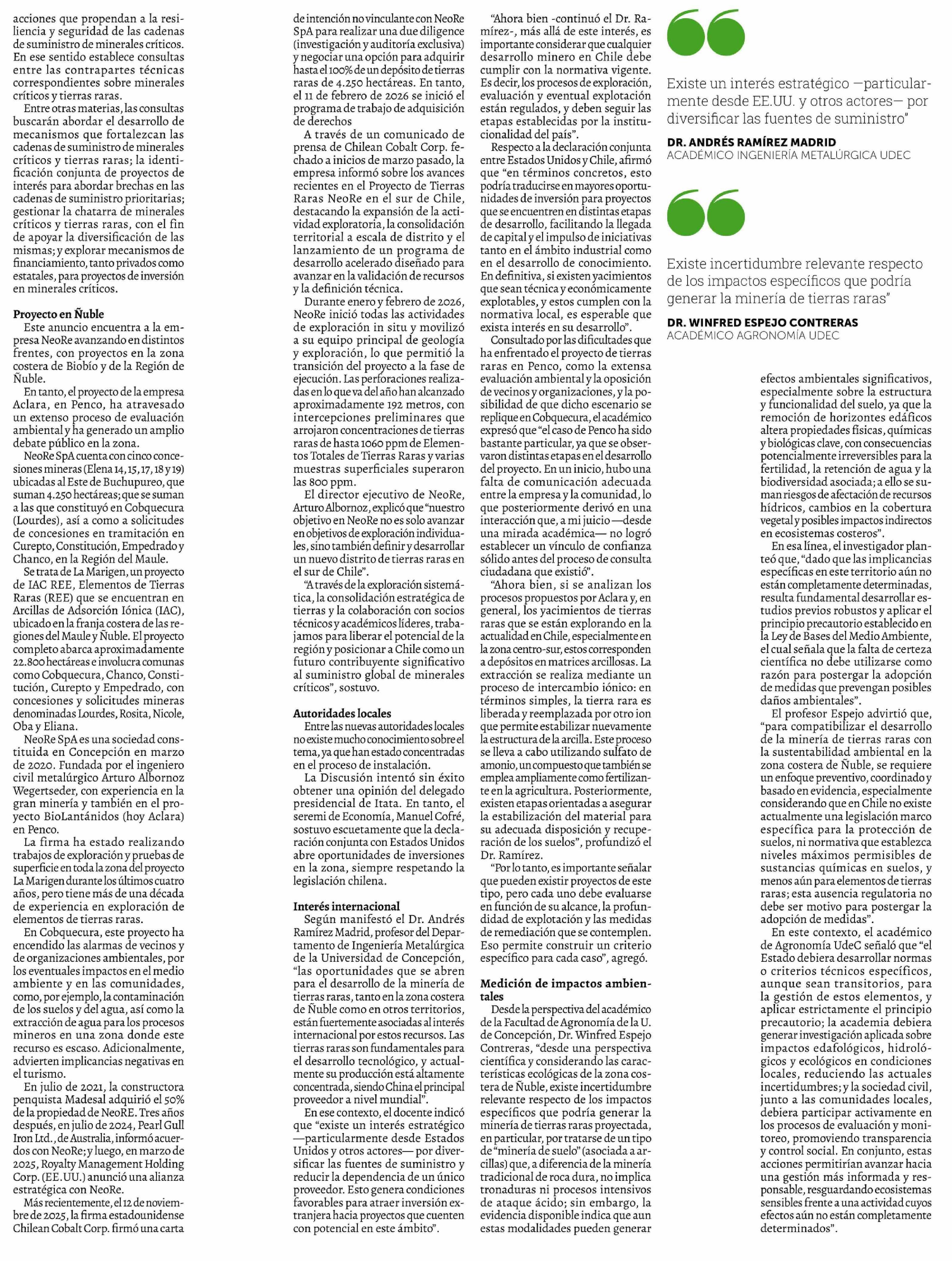 Título: Prevén impulso a la minería de tierras raras en Ñuble tras declaración Chile-Estados Unidos