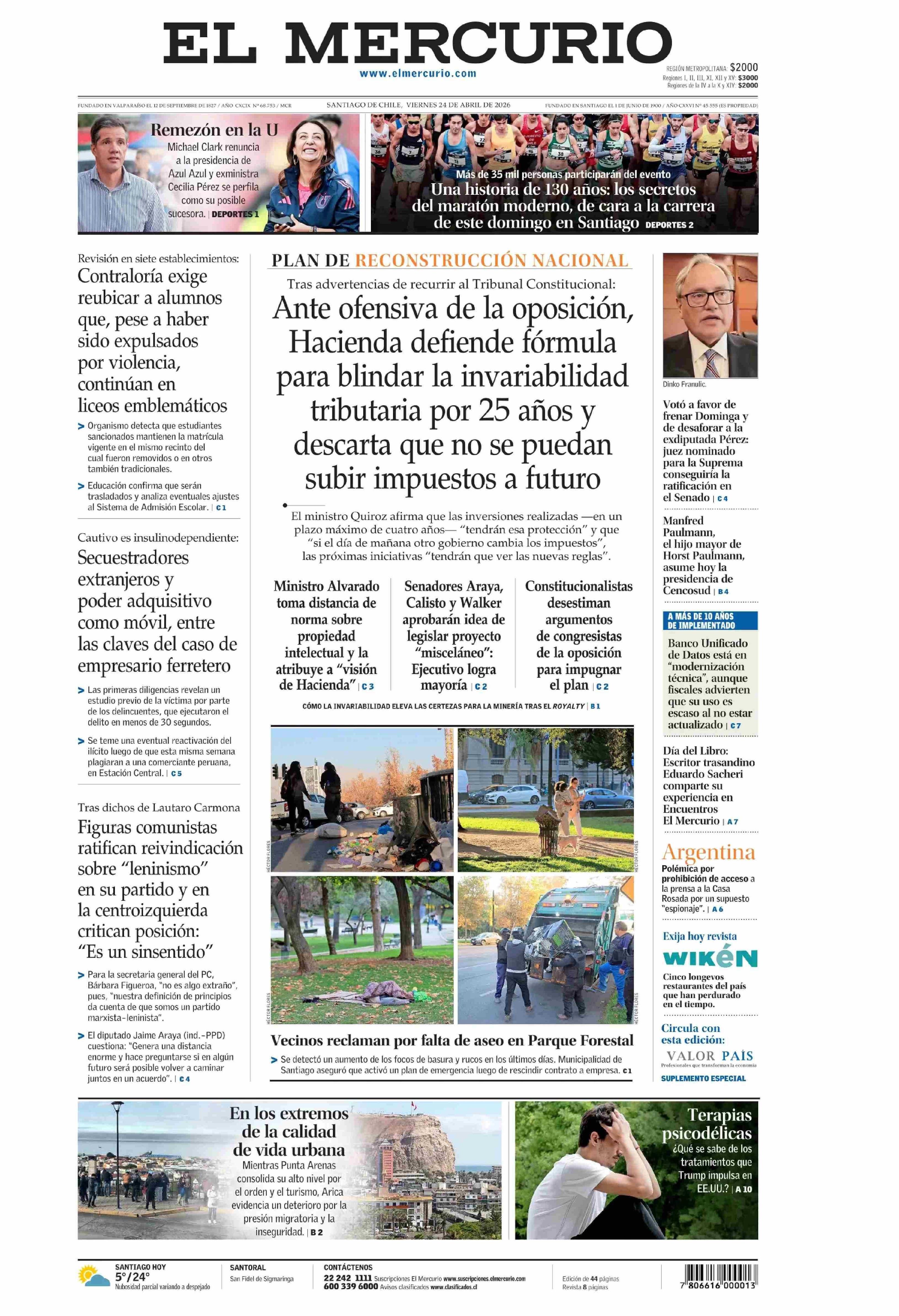 Fecha: 24-04-2026 Sector: Portada Región: Región Metropolitana de Santiago