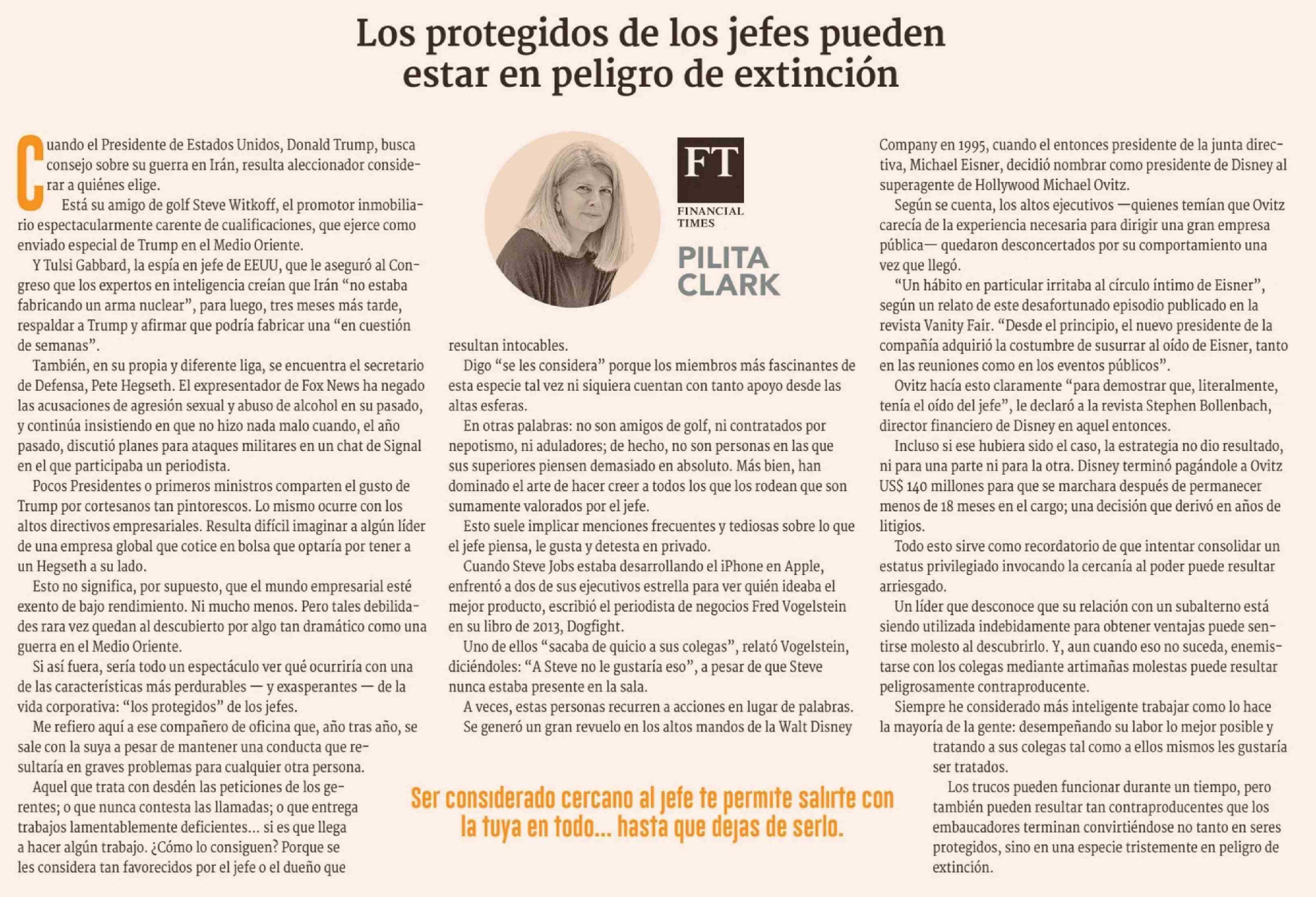 Columnas de Opinión: Los protegidos de los jefes pueden estar en peligro de extinción