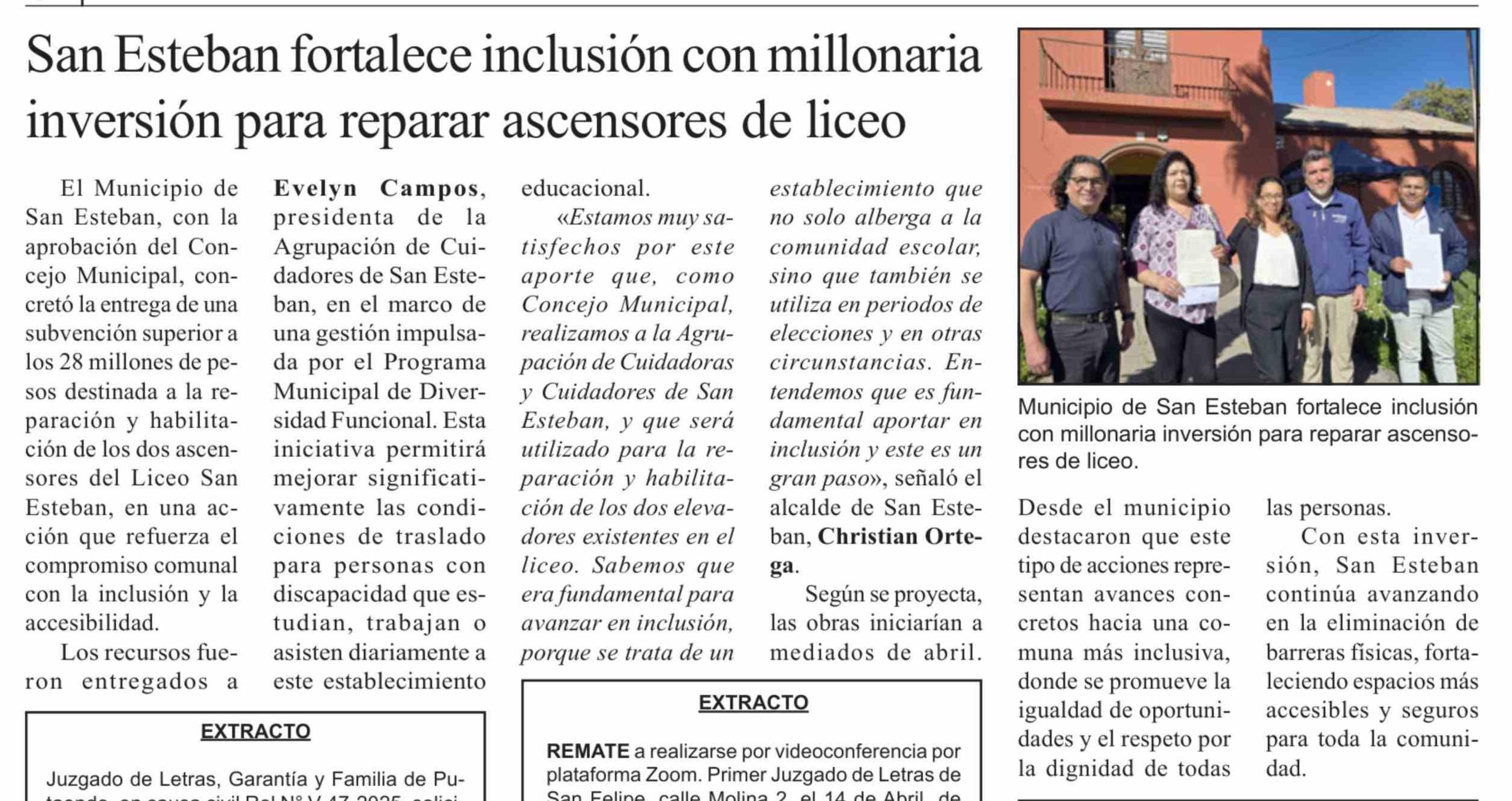 San Esteban fortalece inclusión con millonaria inversión para reparar ascensores de liceo