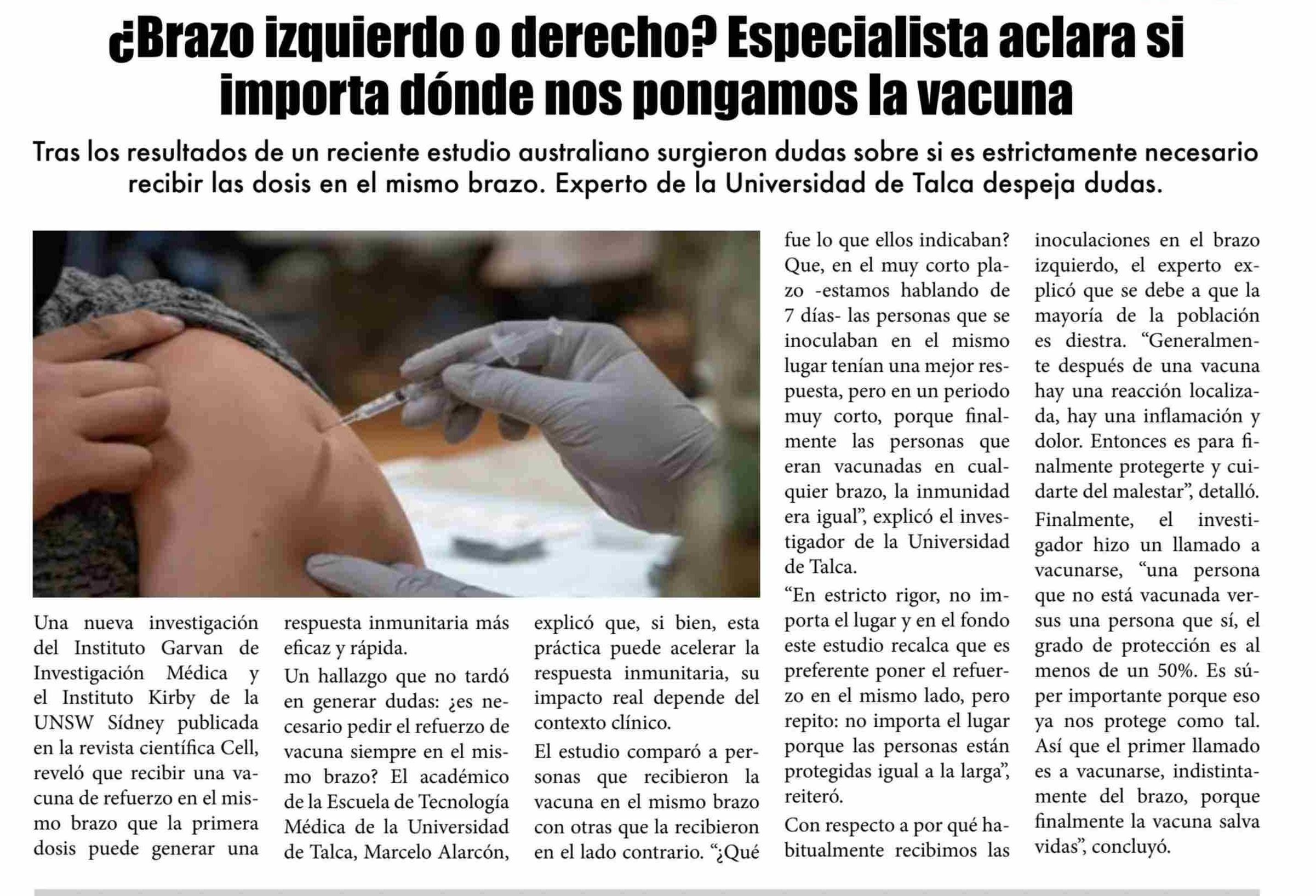 ¿Brazo izquierdo o derecho? Especialista aclara si importa dónde nos pongamos la vacuna