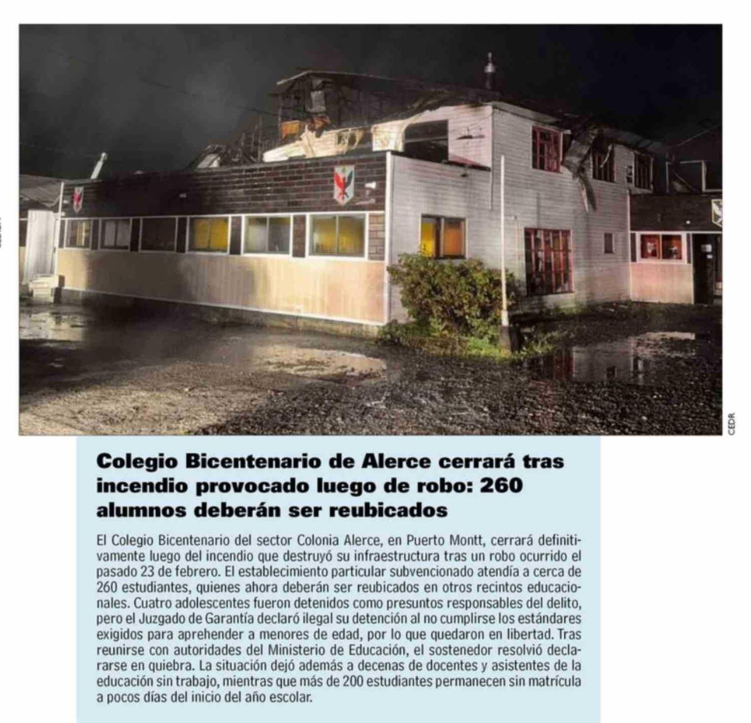 Colegio Bicentenario de Alerce cerrará tras incendio provocado luego de robo: 260 alumnos deberán ser reubicados