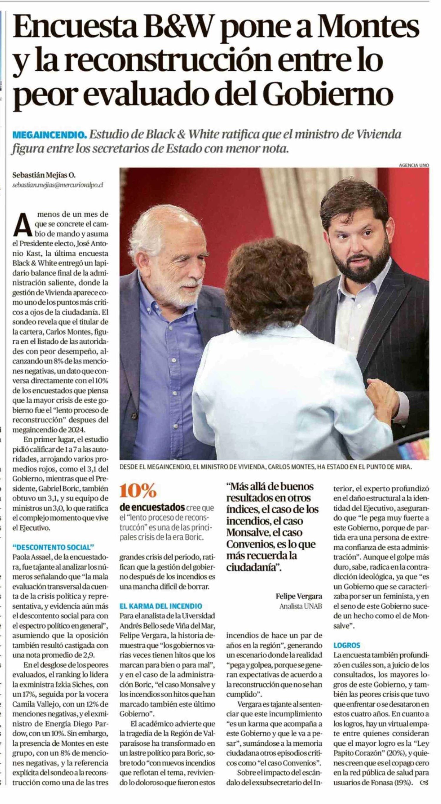 Encuesta B&W pone a Montes y la reconstrucción entre lo peor evaluado del Gobierno