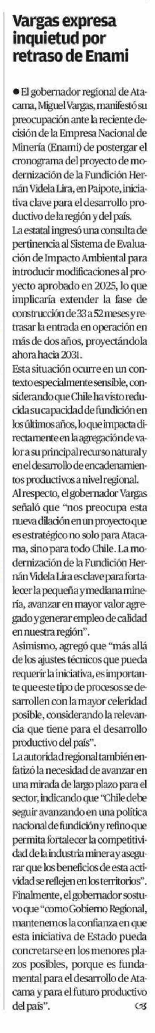 Fecha: 20-04-2026 Sector: Noticia general Región: Región de Atacama