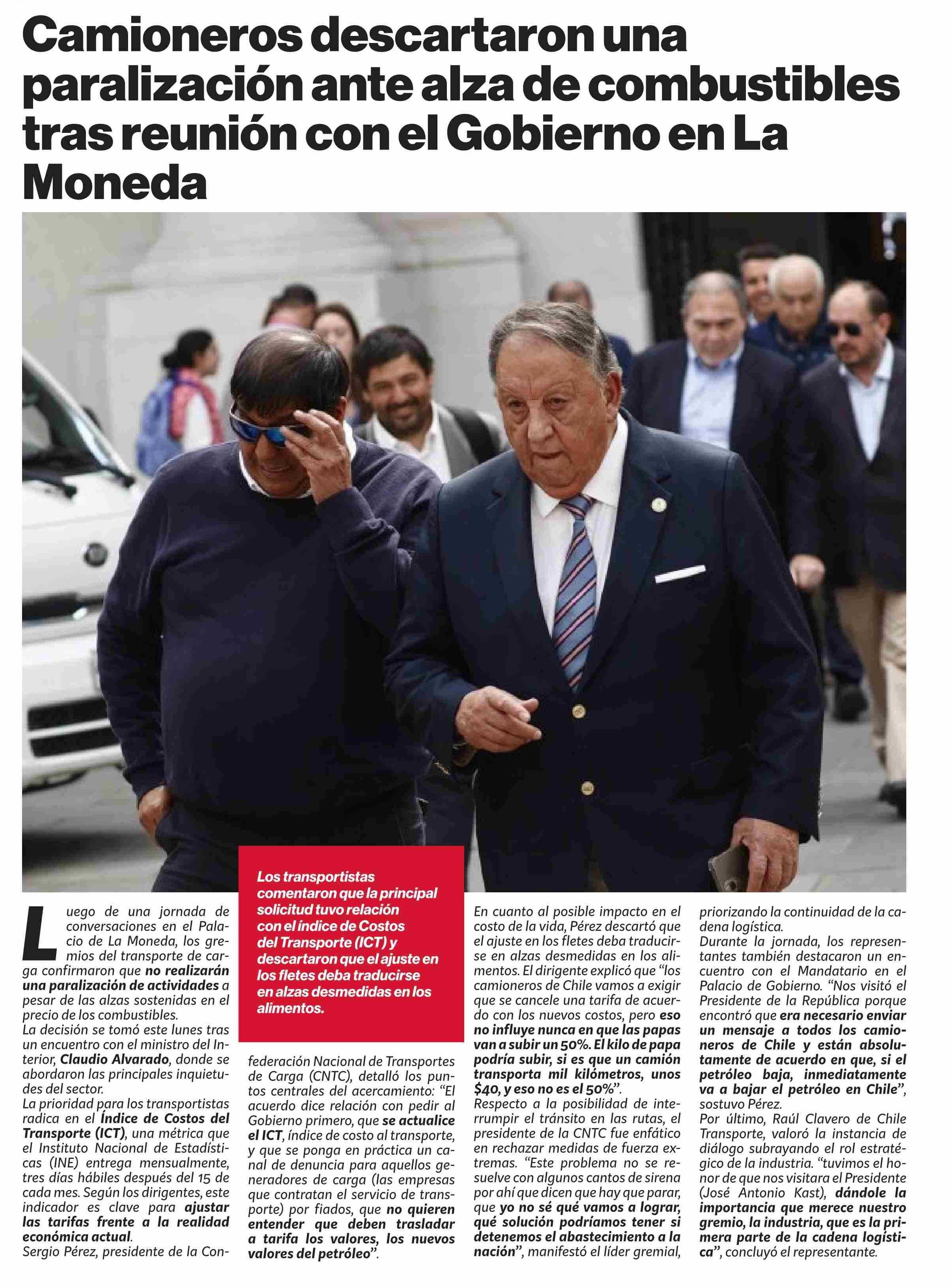 Camioneros descartaron una paralización ante alza de combustibles tras reunión con el Gobierno en La Moneda