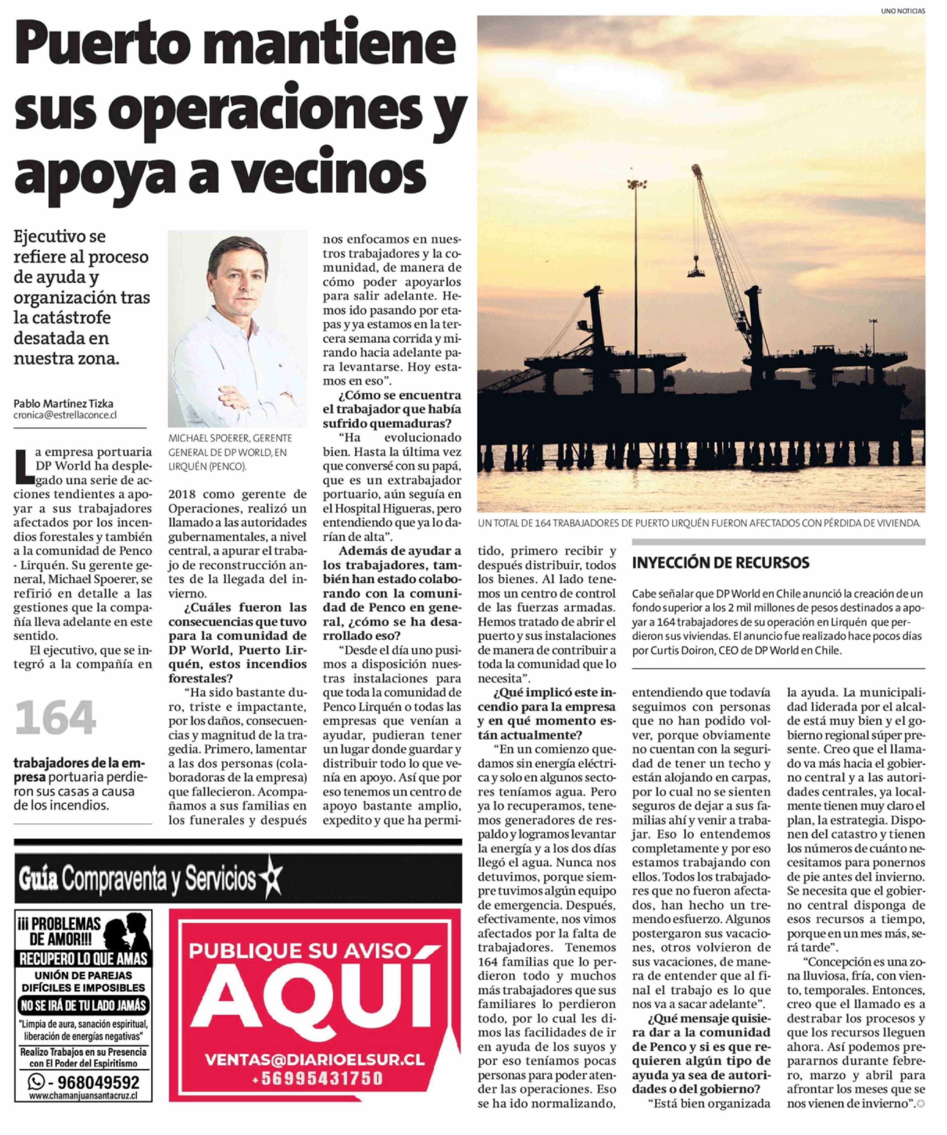 Puerto mantiene sus operaciones y apoya a vecinos