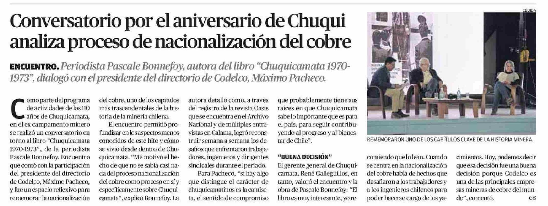 Conversatorio por el aniversario de Chuqui analiza proceso de nacionalización del cobre