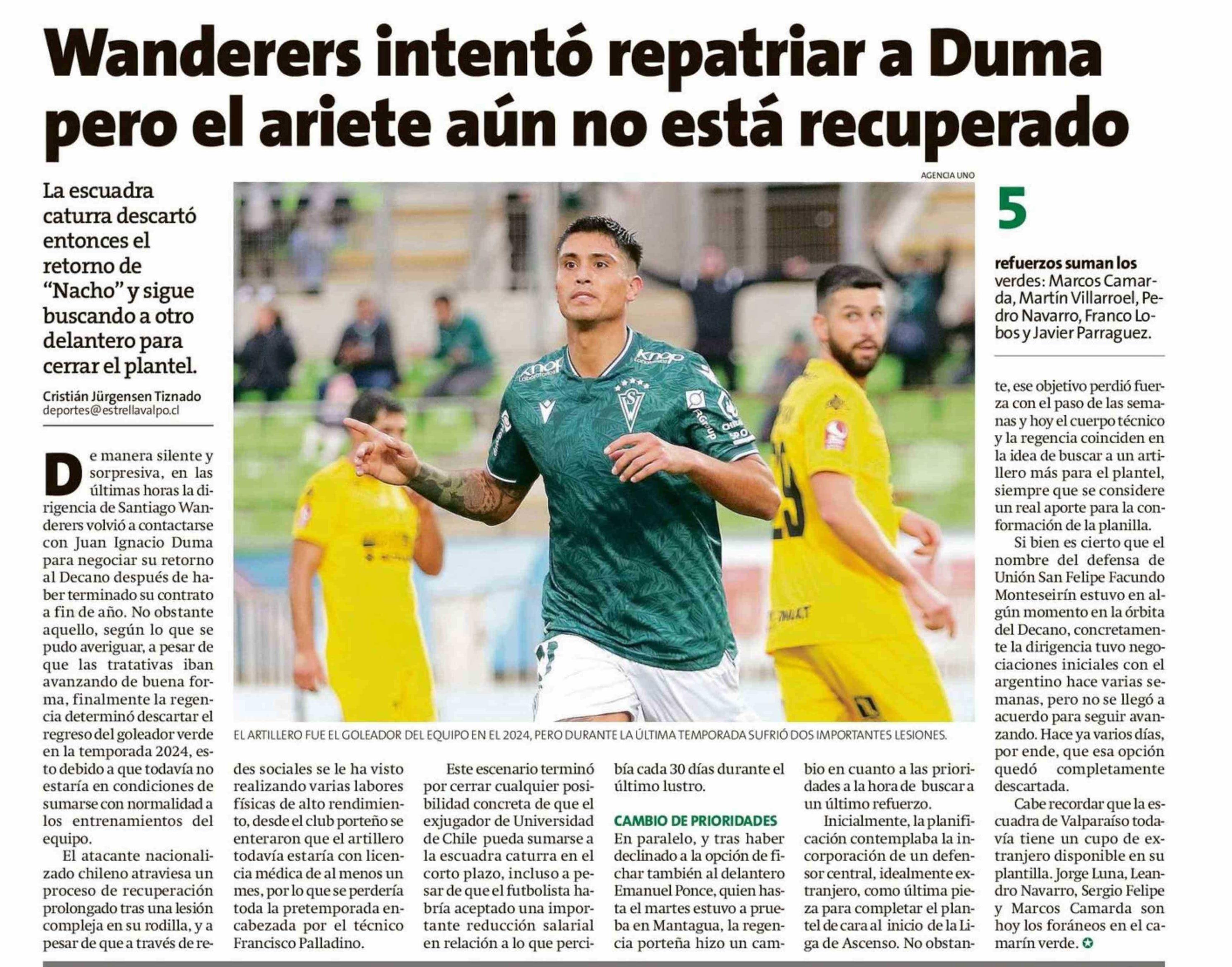 Wanderers intentó repatriar a Duma pero el ariete aún no está recuperado