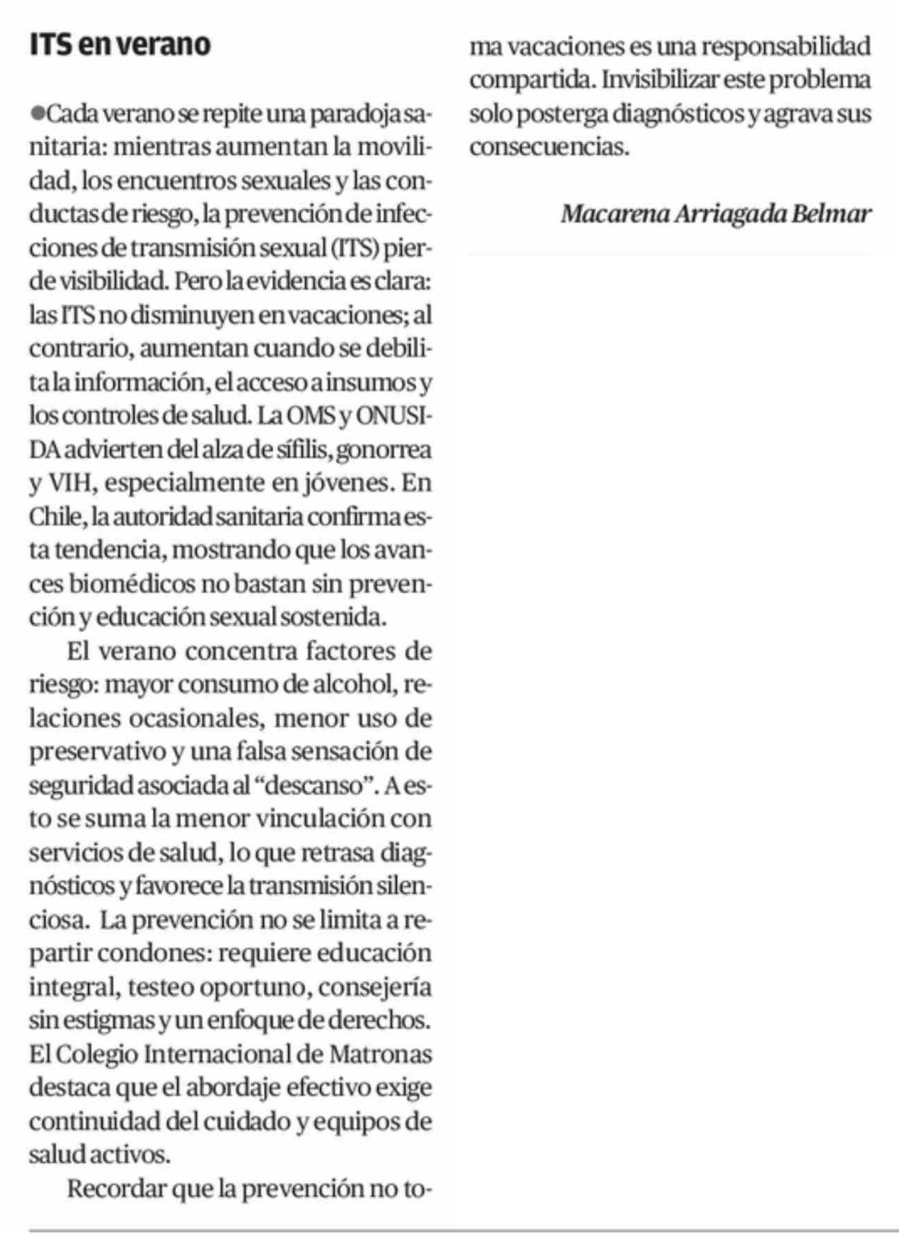 Cartas: ITS en verano