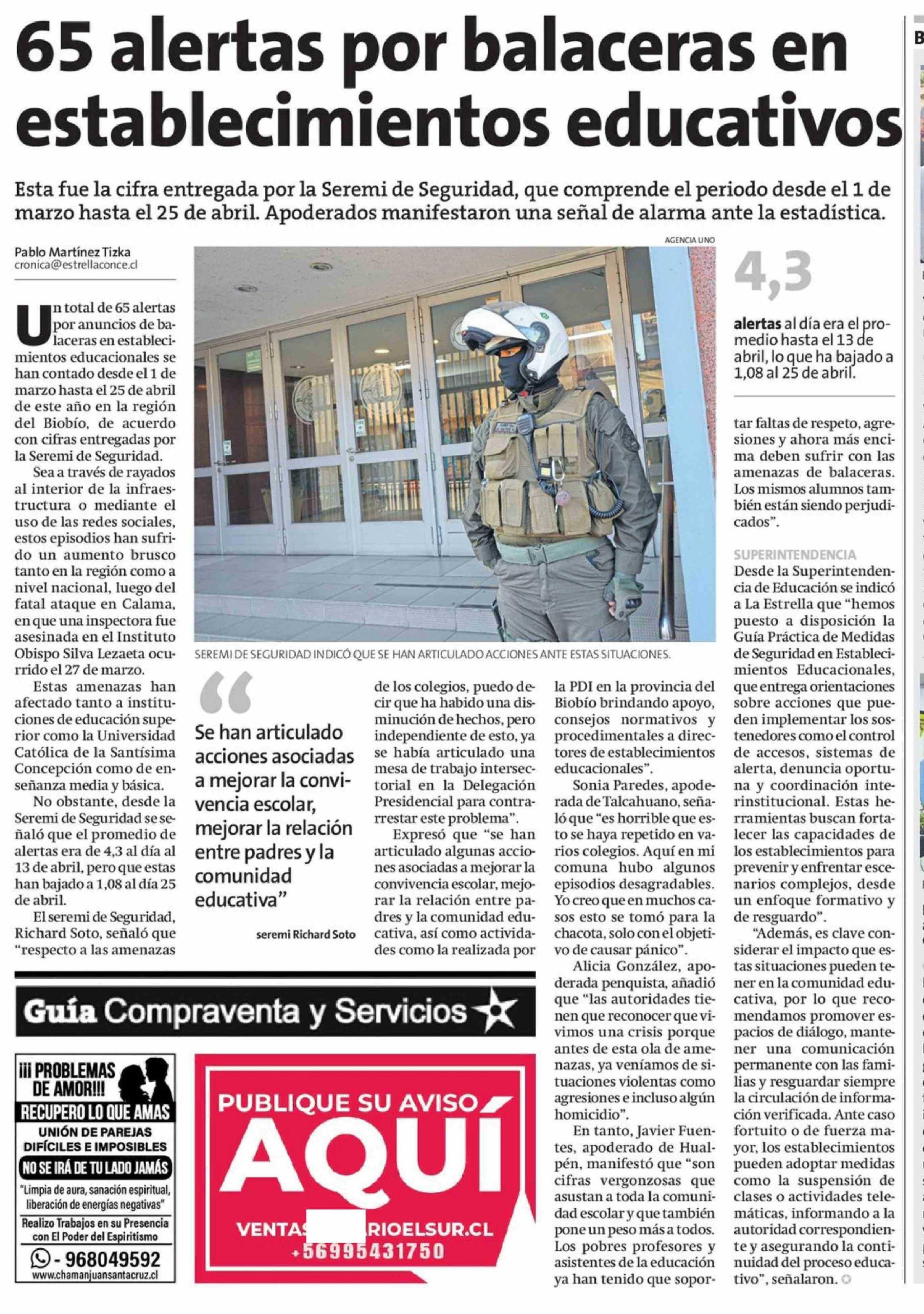 Título: 65 Alertas por balaceras en establecimientos educativos