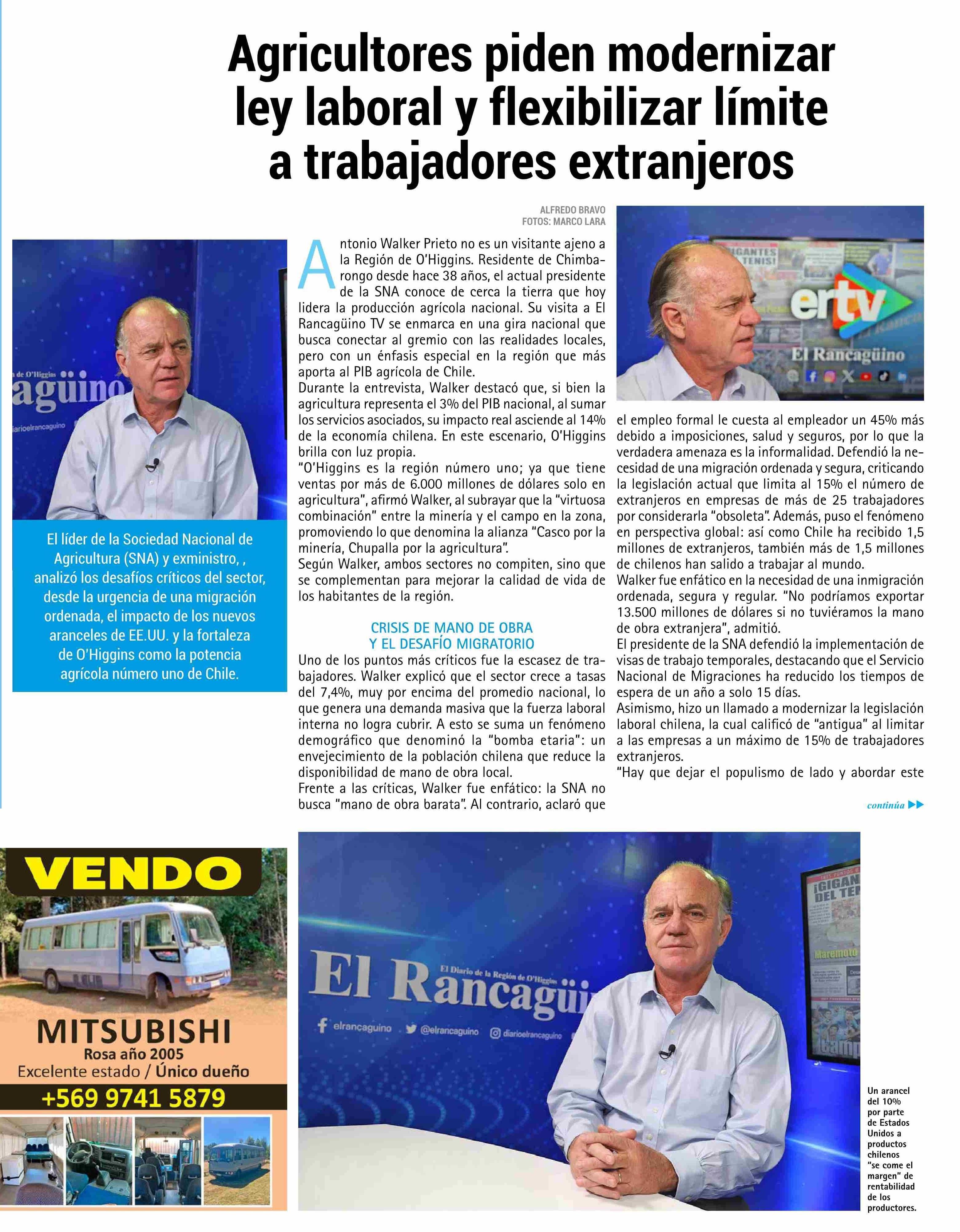 Agricultores piden modernizar ley laboral y flexibilizar límite a trabajadores extranjeros