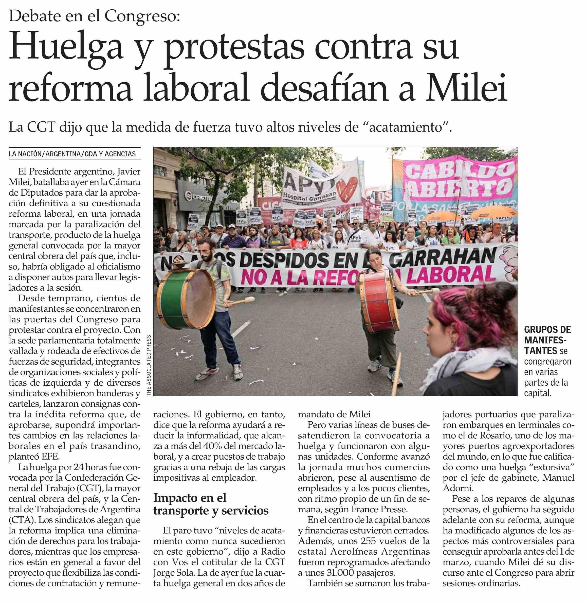 Huelga y protestas contra su reforma laboral desafían a Milei