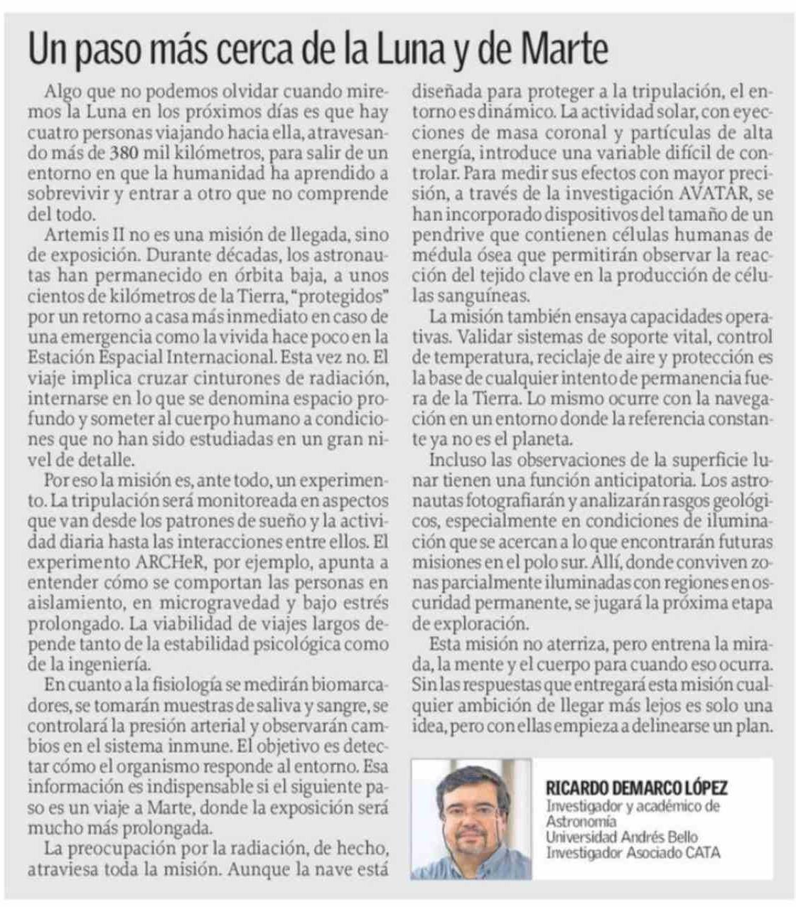 Columnas de Opinión: Un paso más cerca de la Luna y de Marte