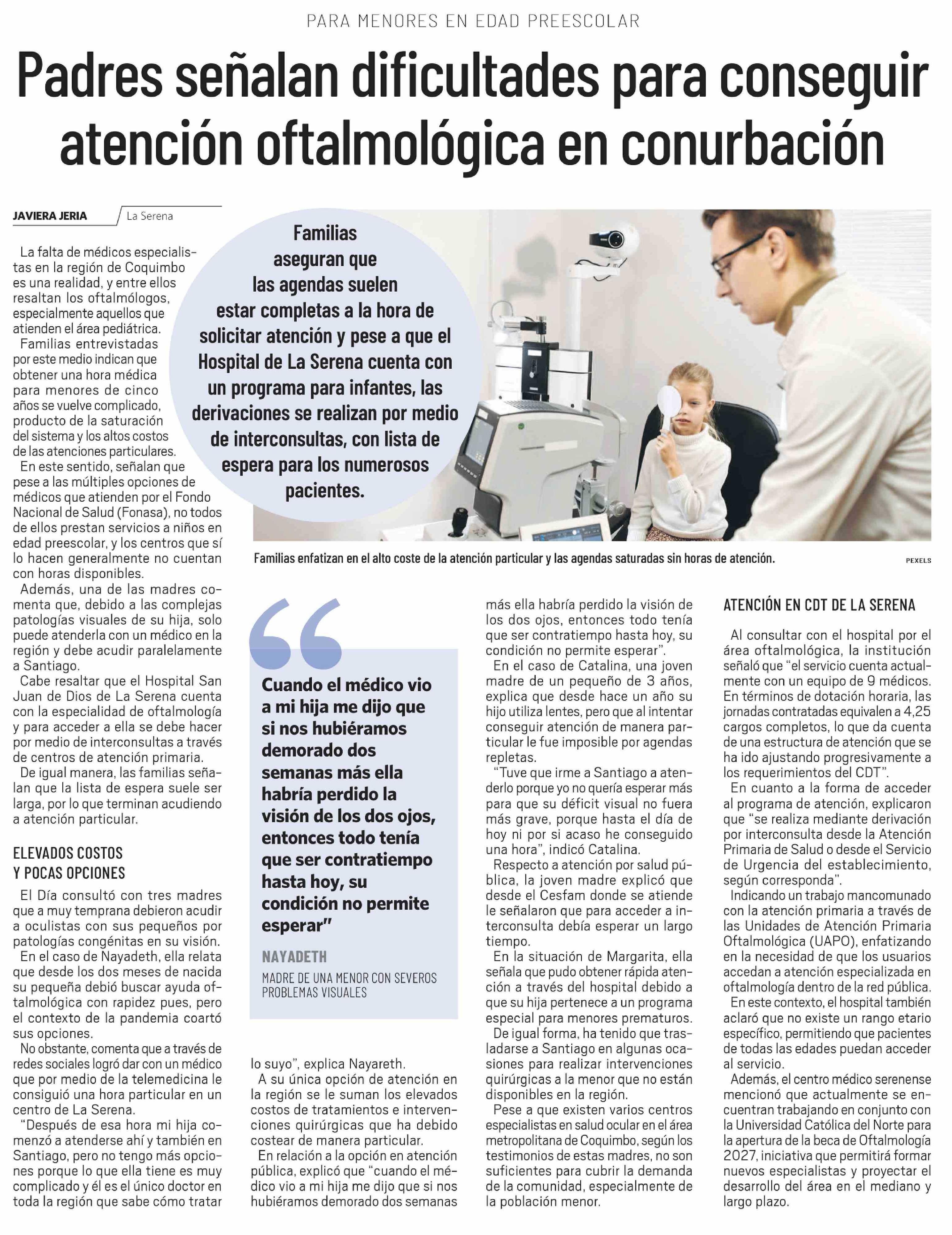 Padres señalan dificultades para conseguir atención oftalmológica en conurbación