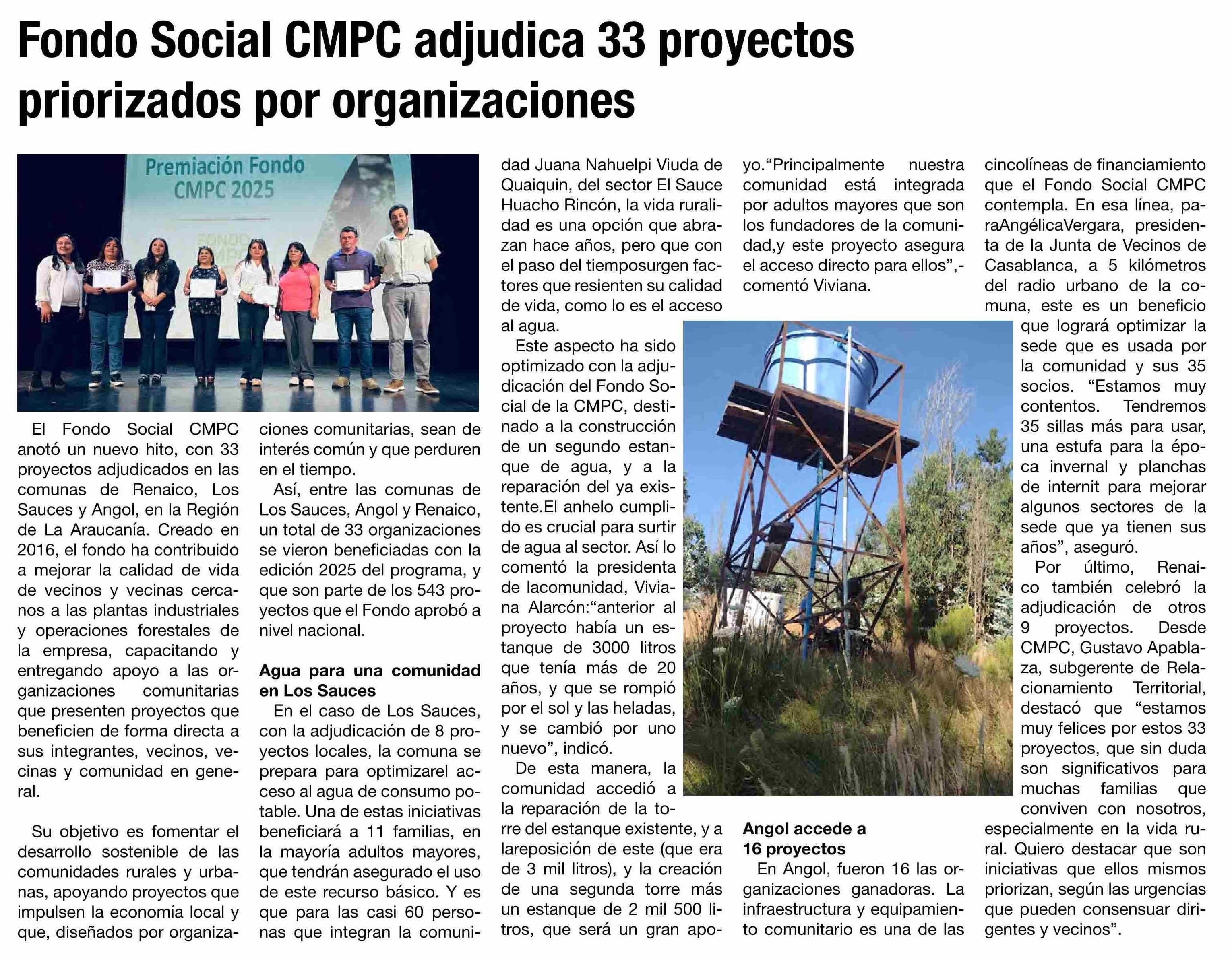 Fondo Social CMPC adjudica 33 proyectos priorizados por organizaciones