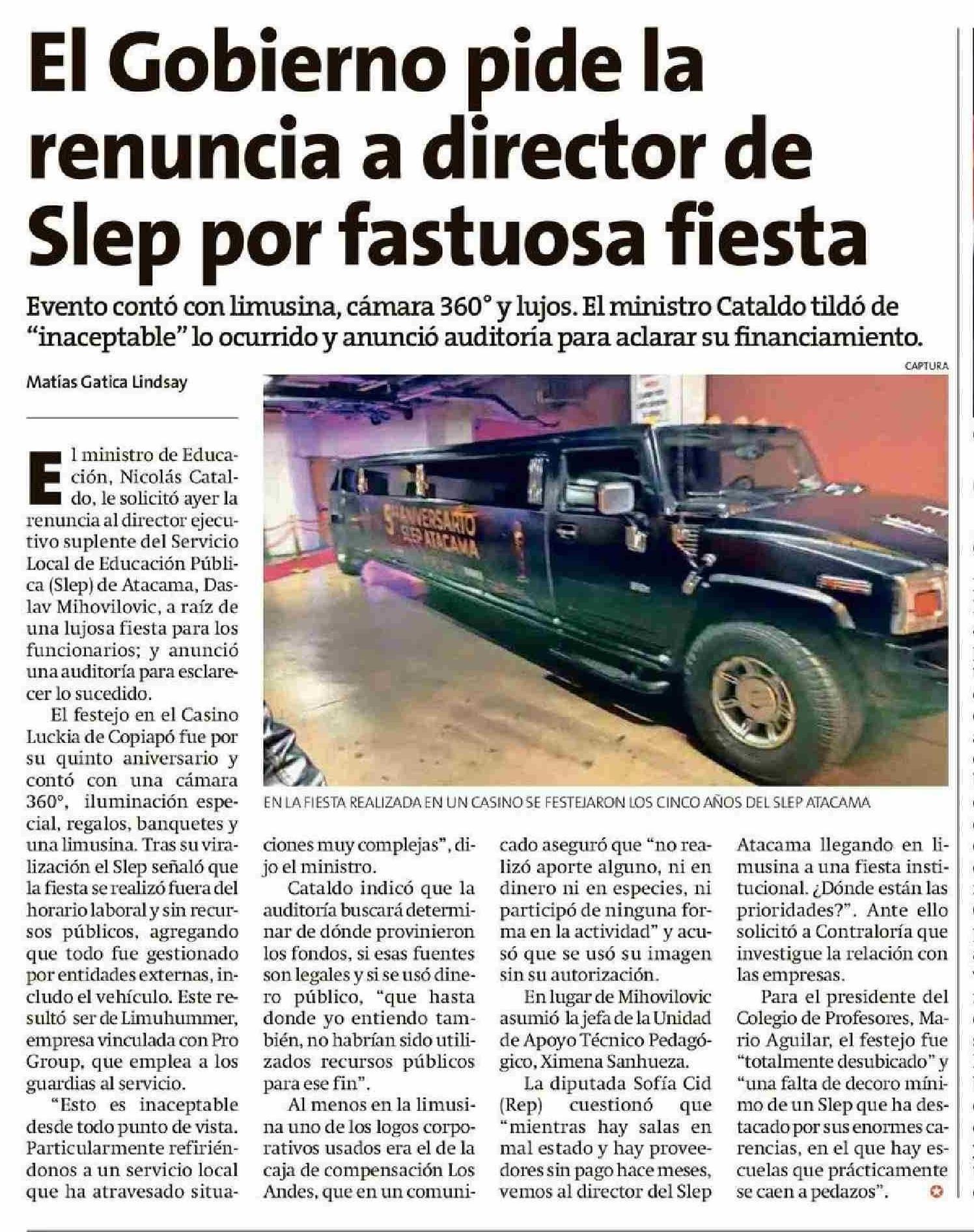 El Gobierno pide la renuncia a director de Slep por fastuosa fiesta