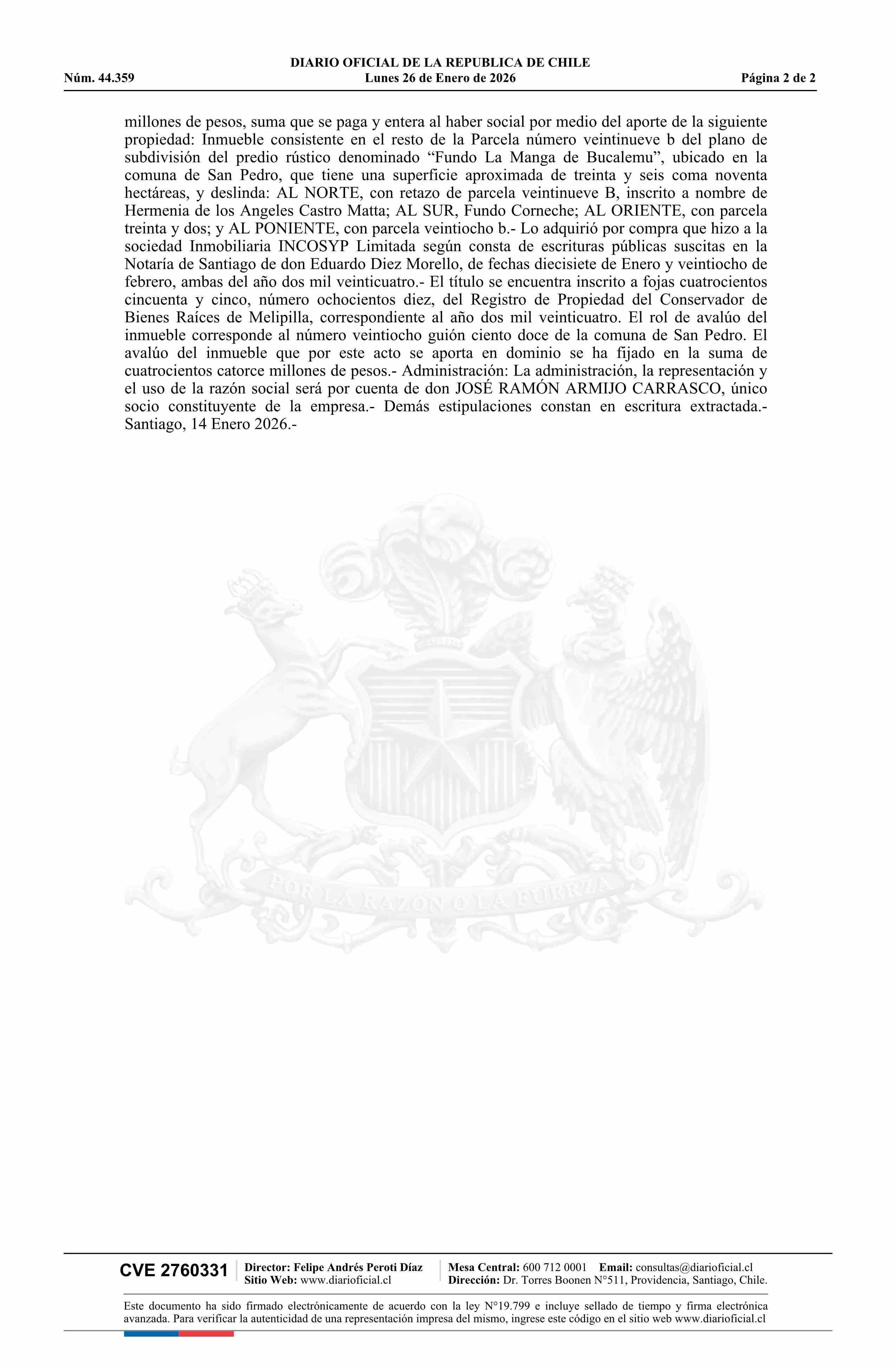 INVERSIONES E INMOBILIARIA SAN RAMÓN DOS SpA