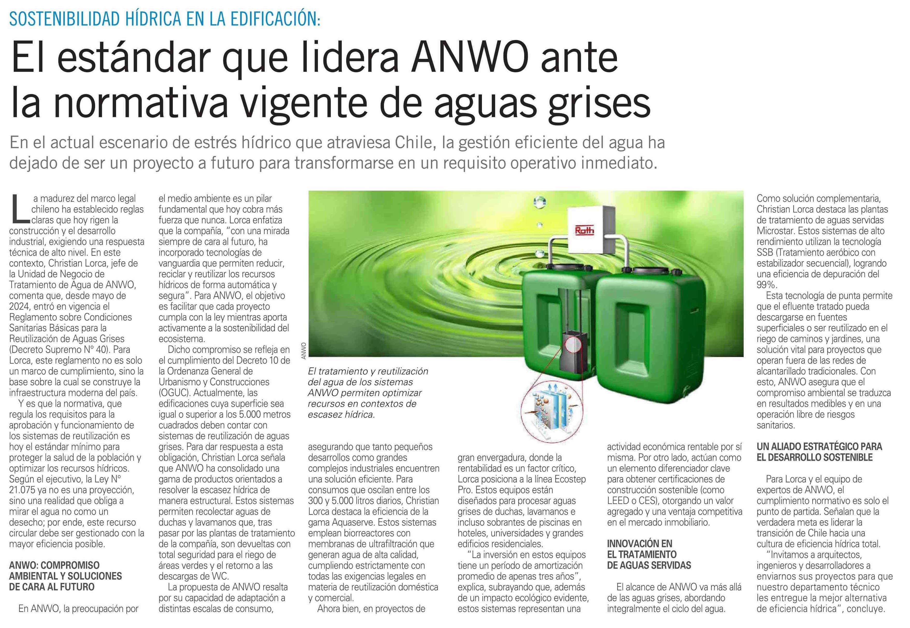 El estándar que lidera ANWO ante la normativa vigente de aguas grises