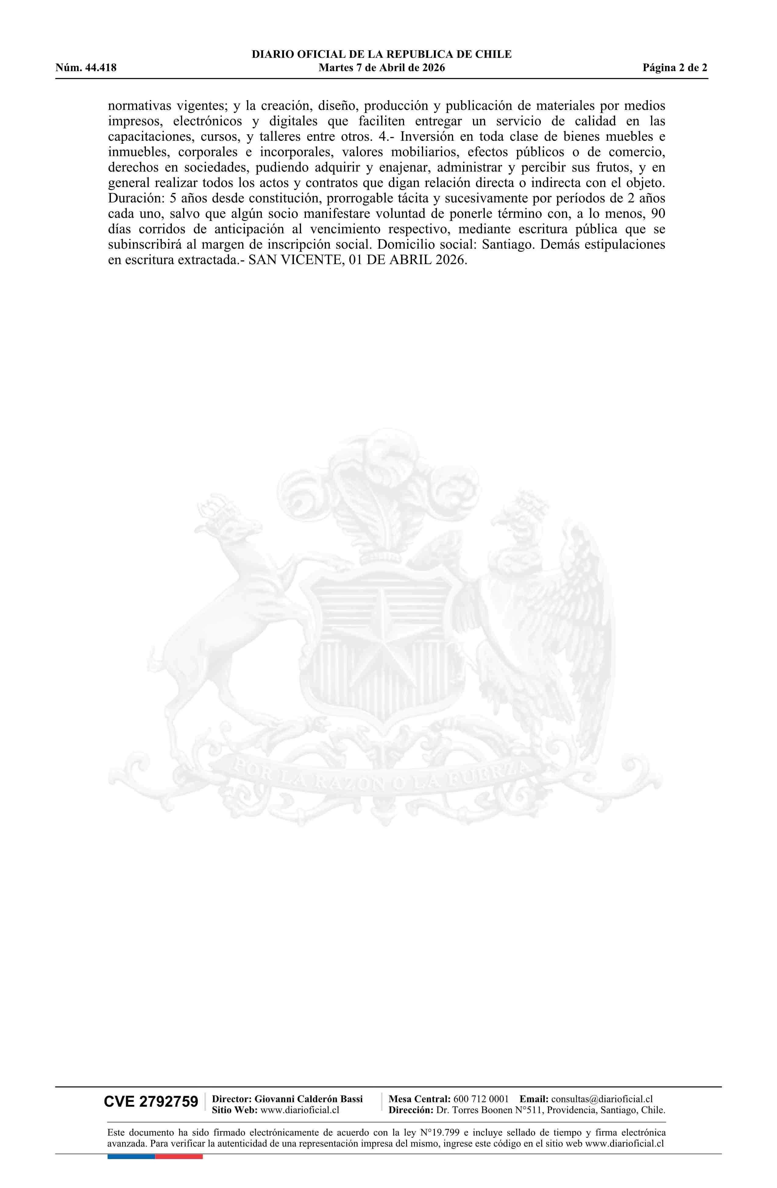 Diario Oficial Edición Electrónica (Diario Oficial de Chile - 5 Empresas Y Cooper)