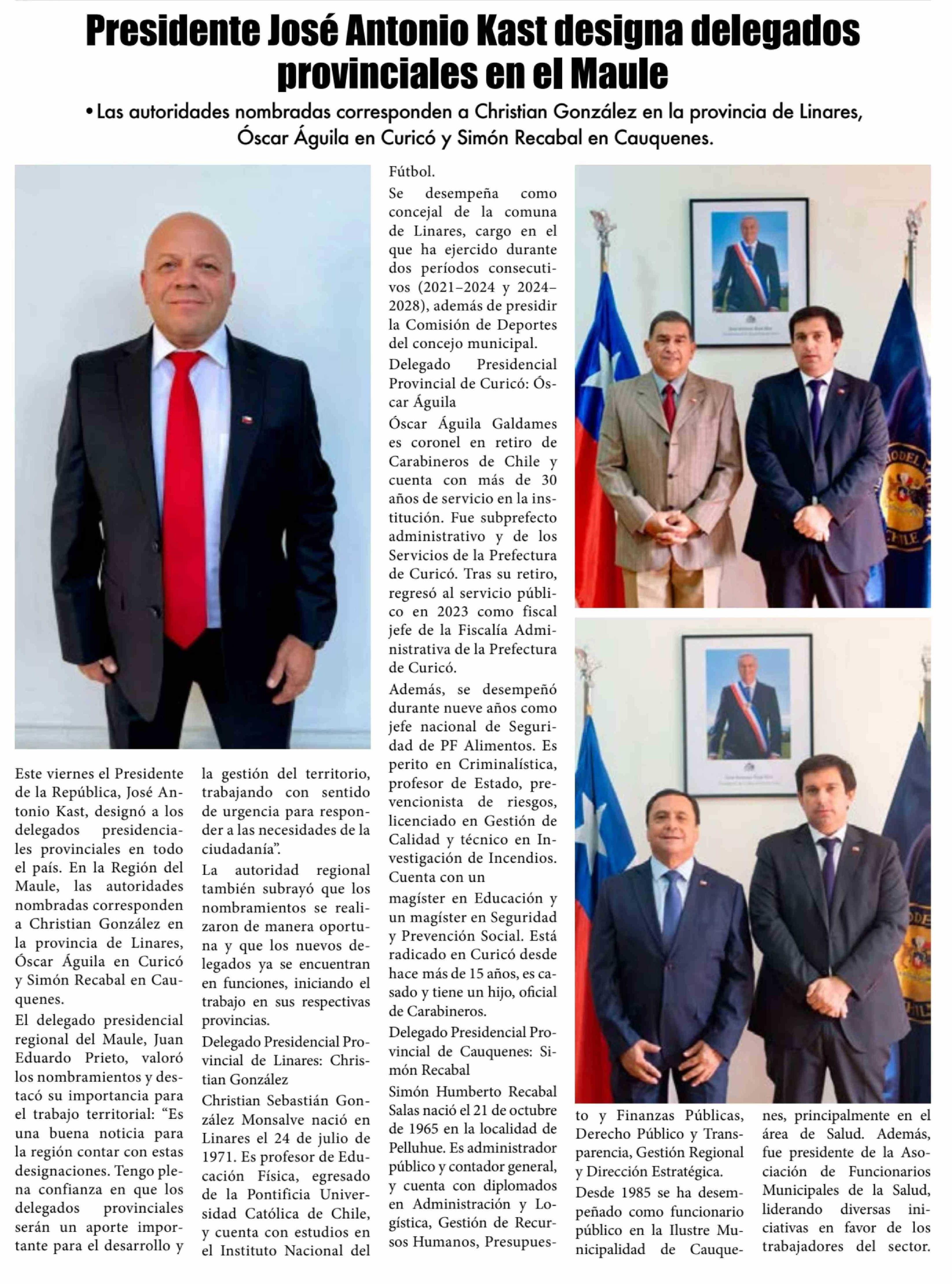Título: Presidente José Antonio Kast designa delegados provinciales en el Maule