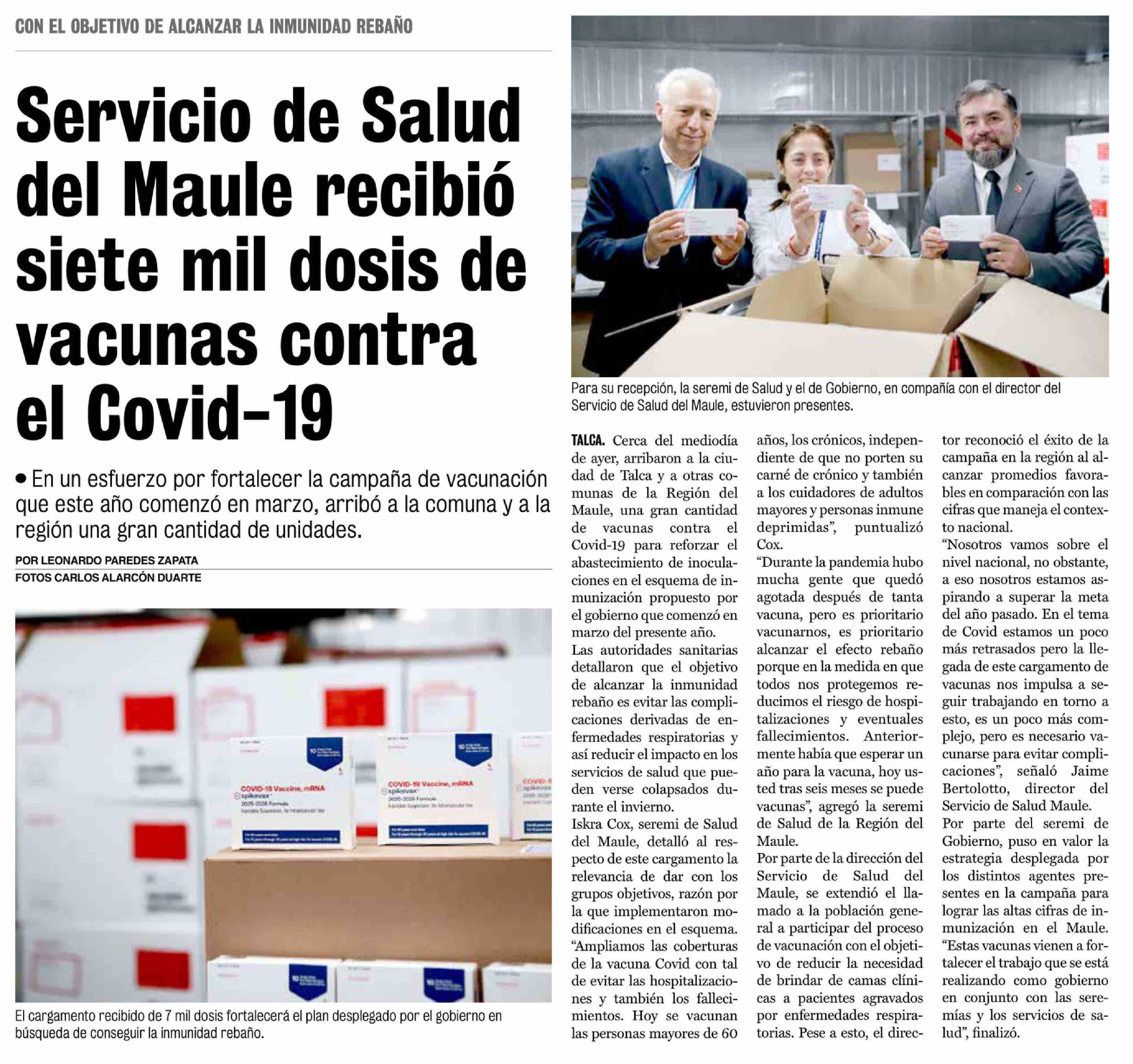 Título: Servicio de Salud del Maule recibió siete mil dosis de vacunas contra el Covid-19