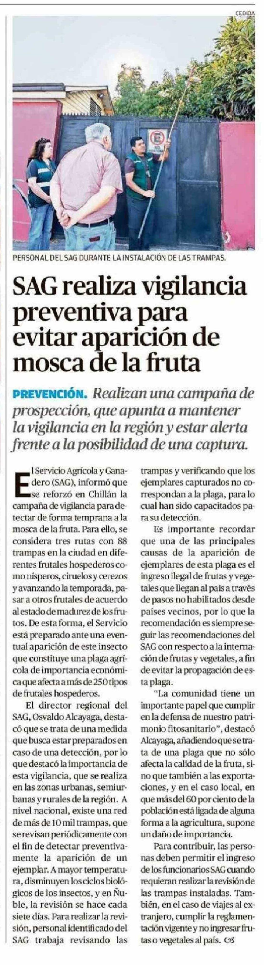 SAG realiza vigilancia preventiva para evitar aparición de mosca de la fruta
