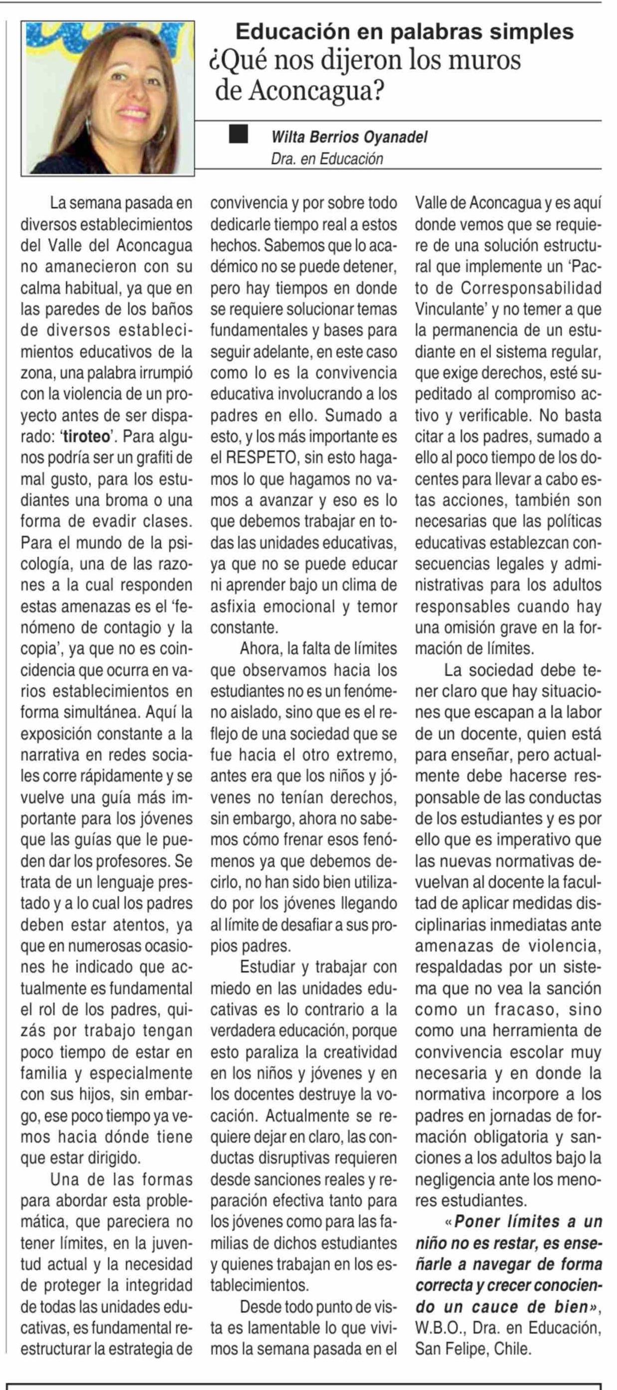 Título: Columnas de Opinión: ¿Qué nos dijeron los muros de Aconcagua?