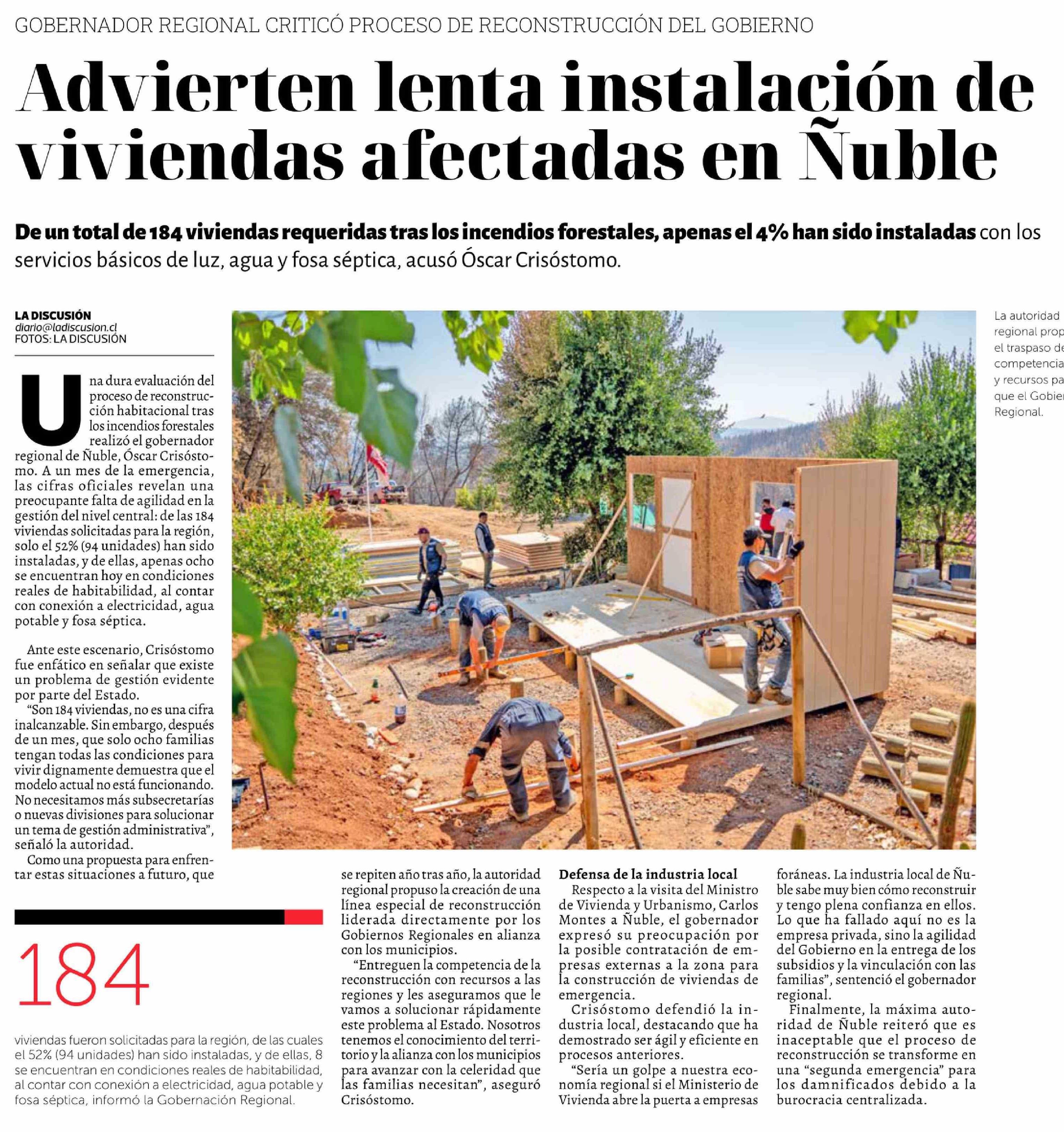 Advierten lenta instalación de viviendas afectadas en Ñuble