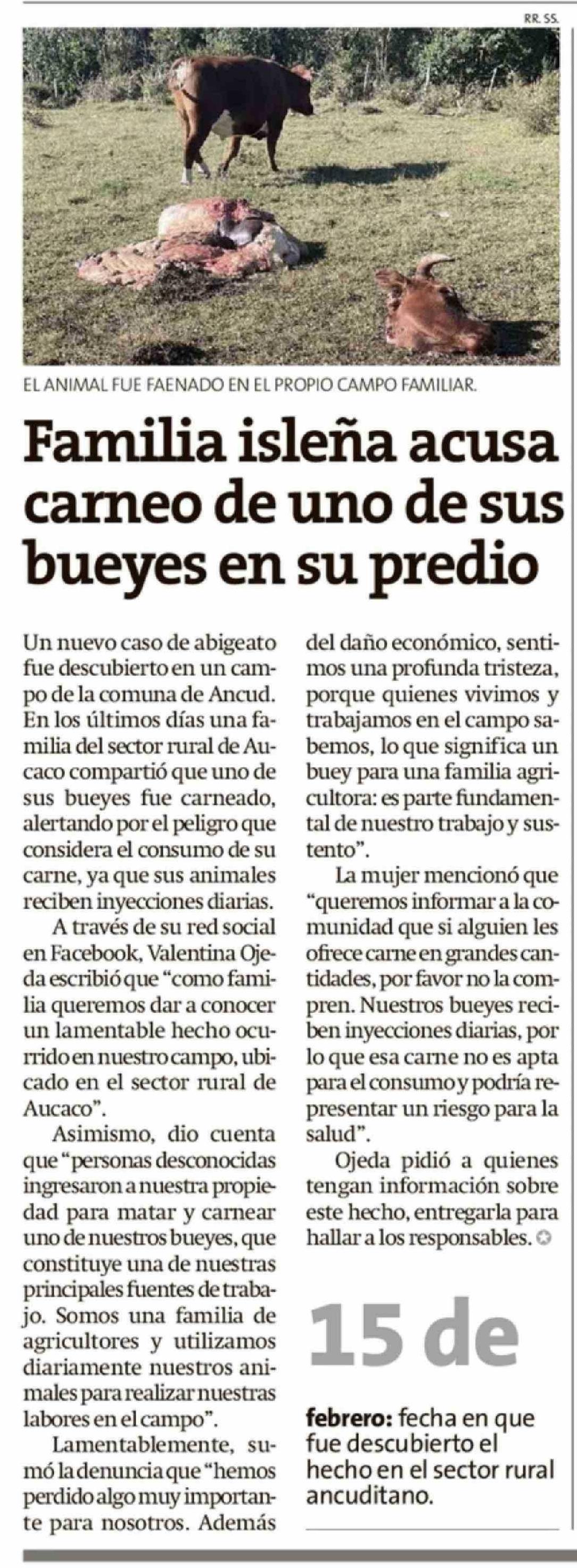Familia isleña acusa carneo de uno de sus bueyes en su predio