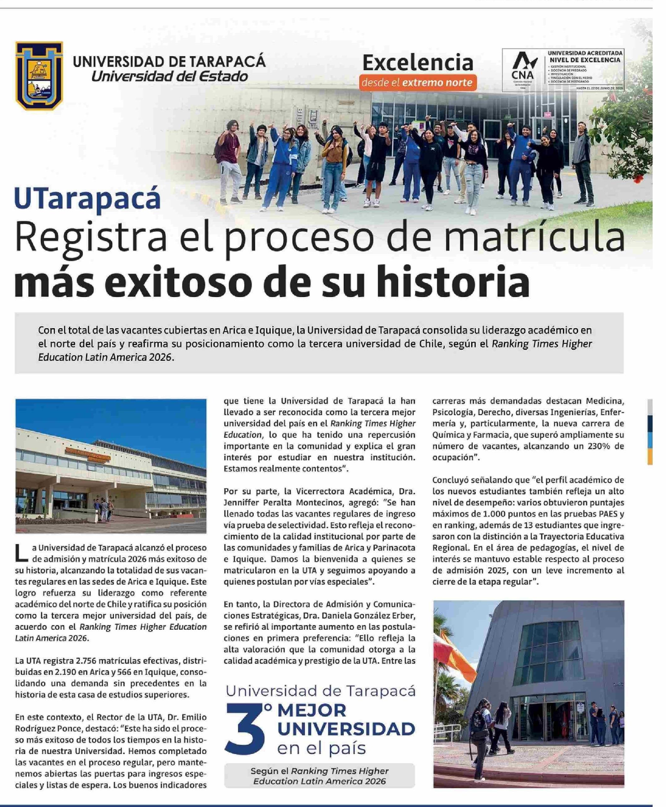 UTarapacá Registra el proceso de matrícula más exitoso de su historia