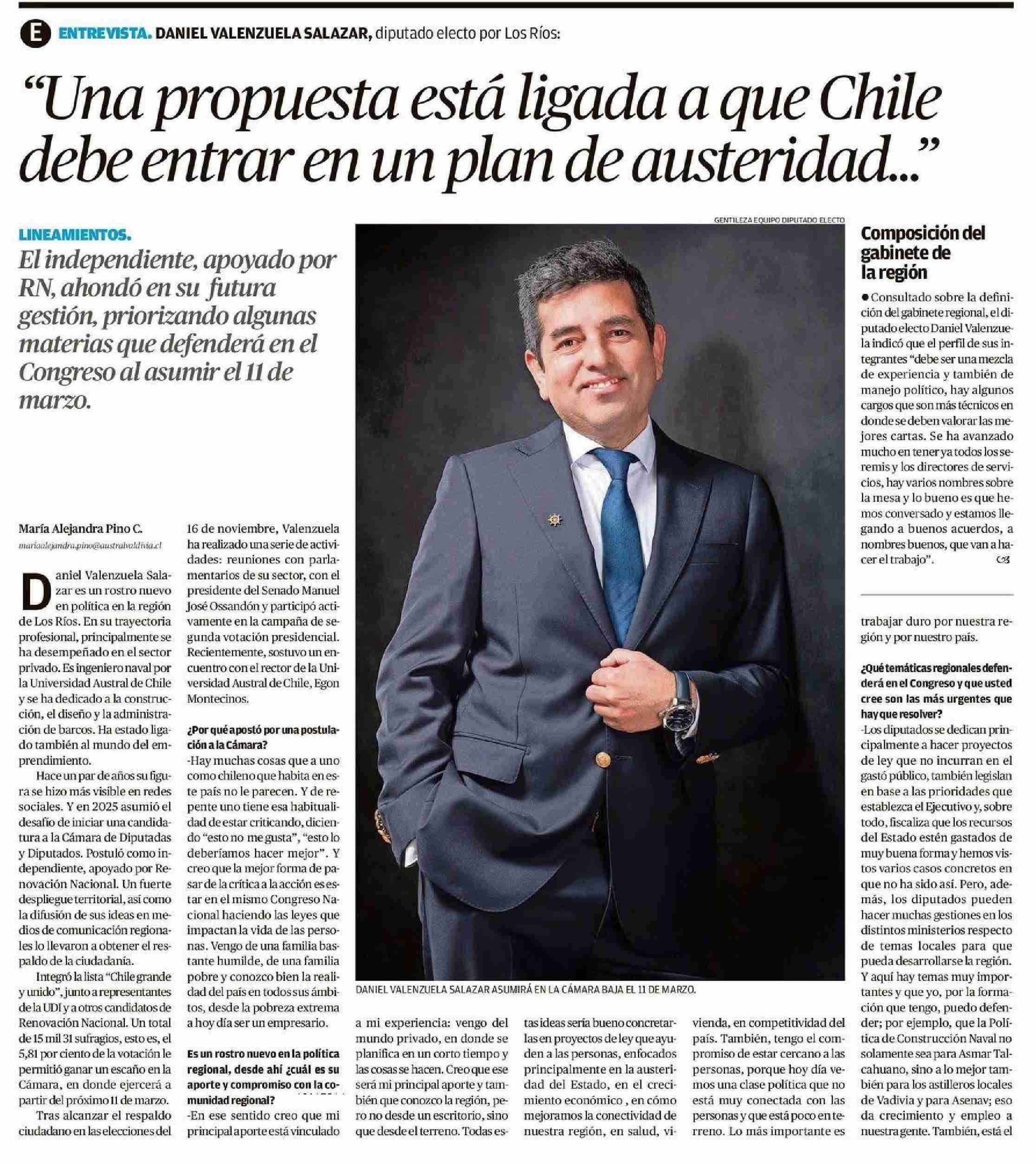 "Una propuesta está ligada a que Chile debe entrar en un plan de austeridad ... "