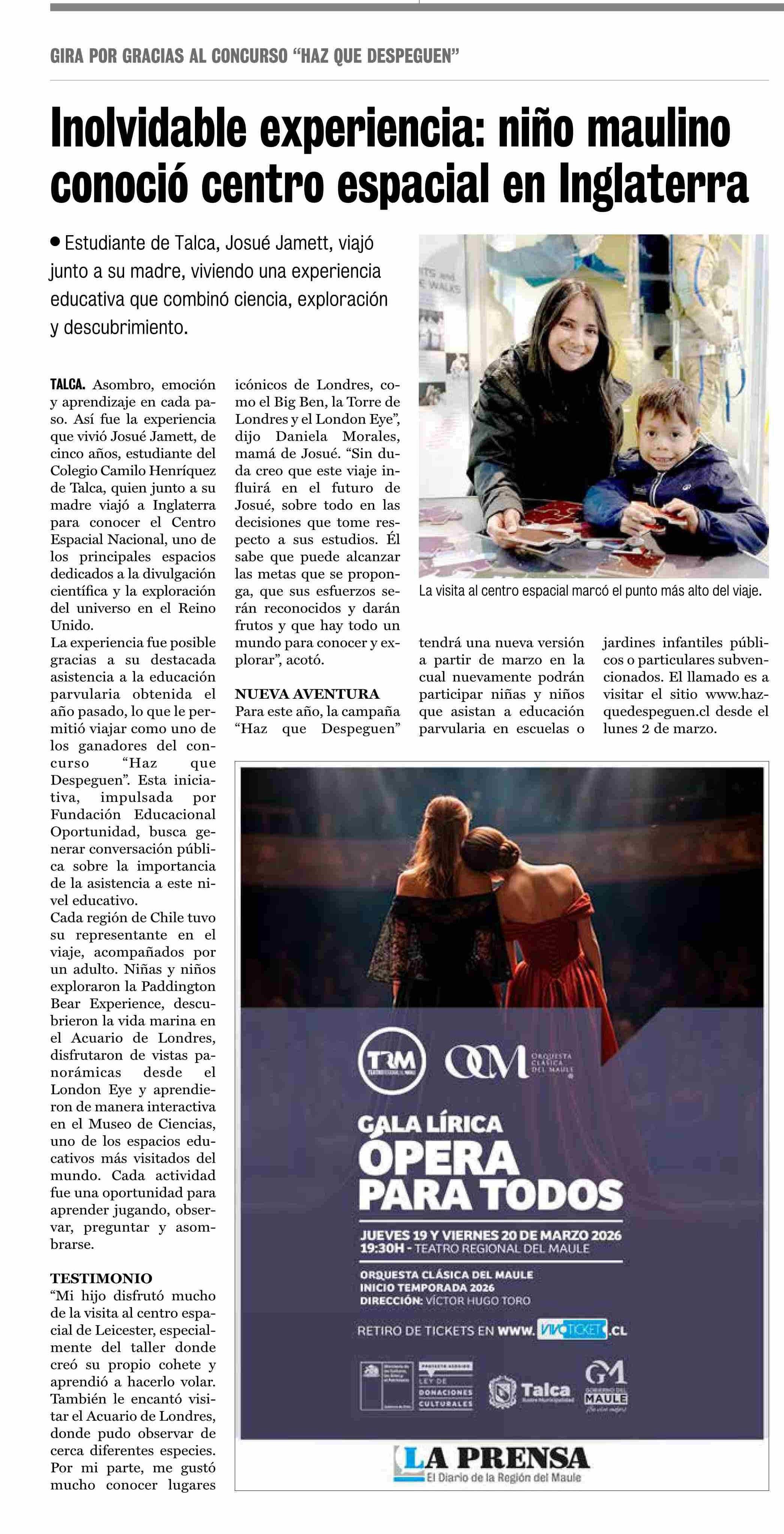 Inolvidable experiencia: niño maulino conoció centro espacial en Inglaterra