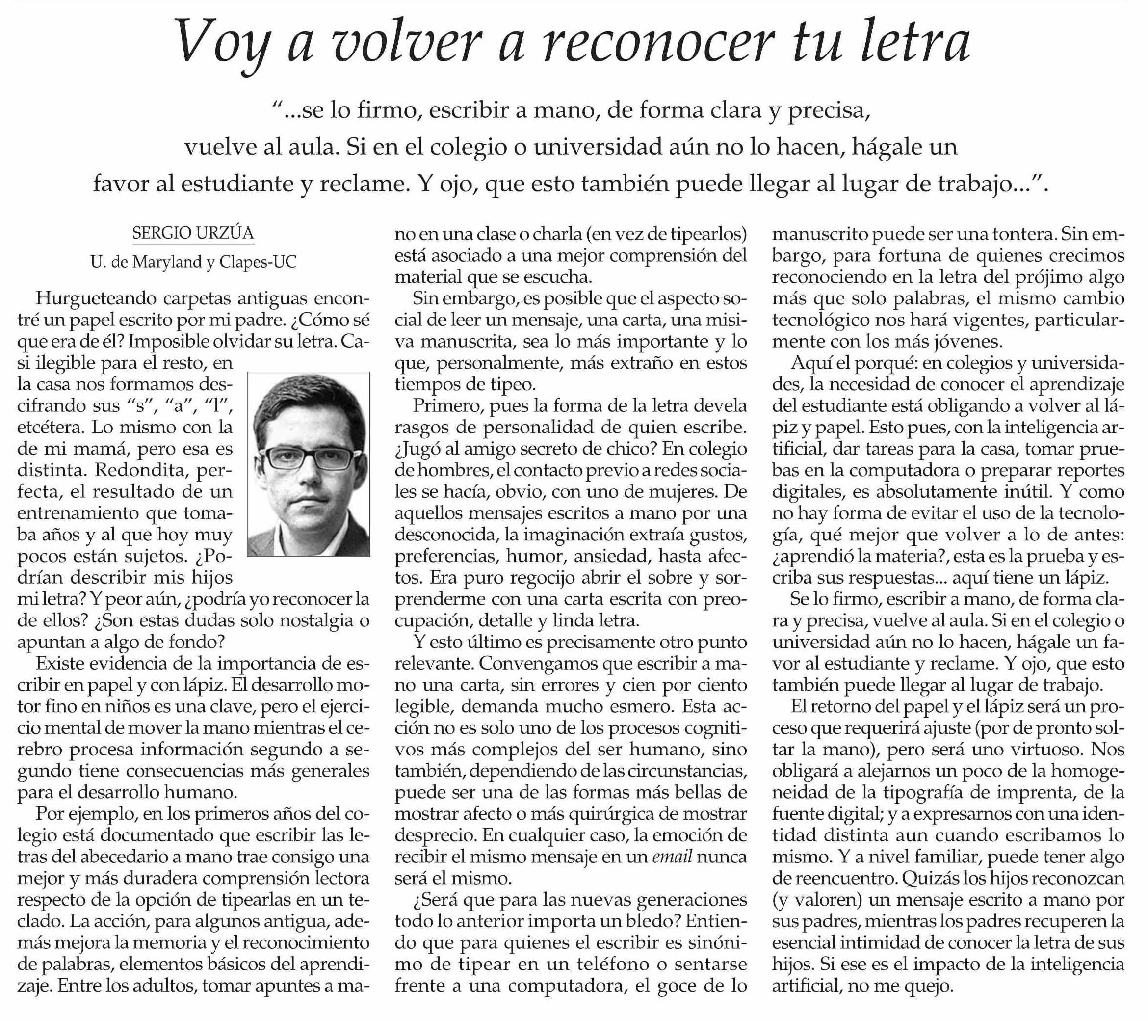Título: Columnas de Opinión: Voy a volver a reconocer tu letra