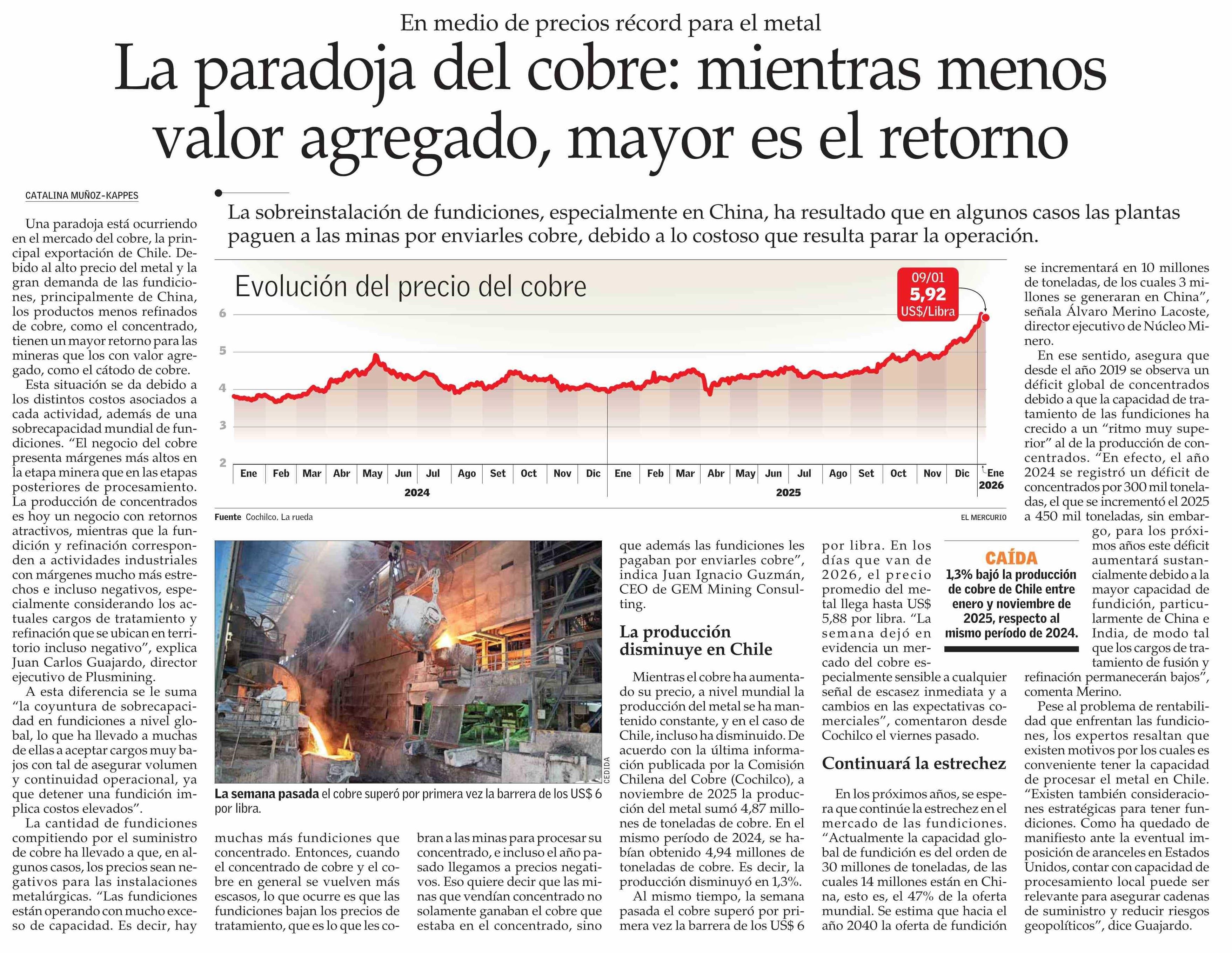 La paradoja del cobre: mientras menos valor agregado, mayor es el retorno
