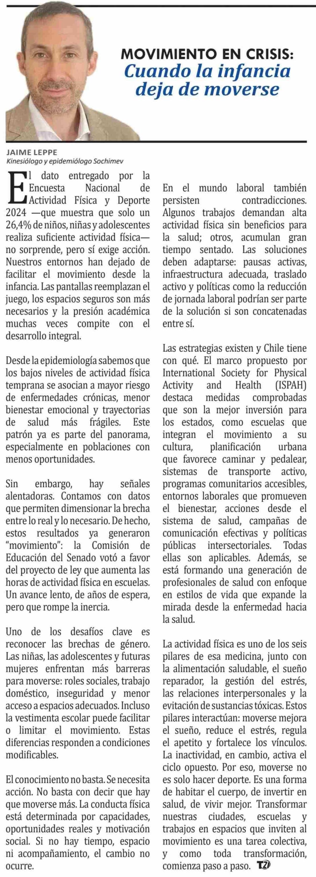 COLUMNAS DE OPINIÓN: MOVIMIENTO EN CRISIS: Cuando la infancia deja de moverse