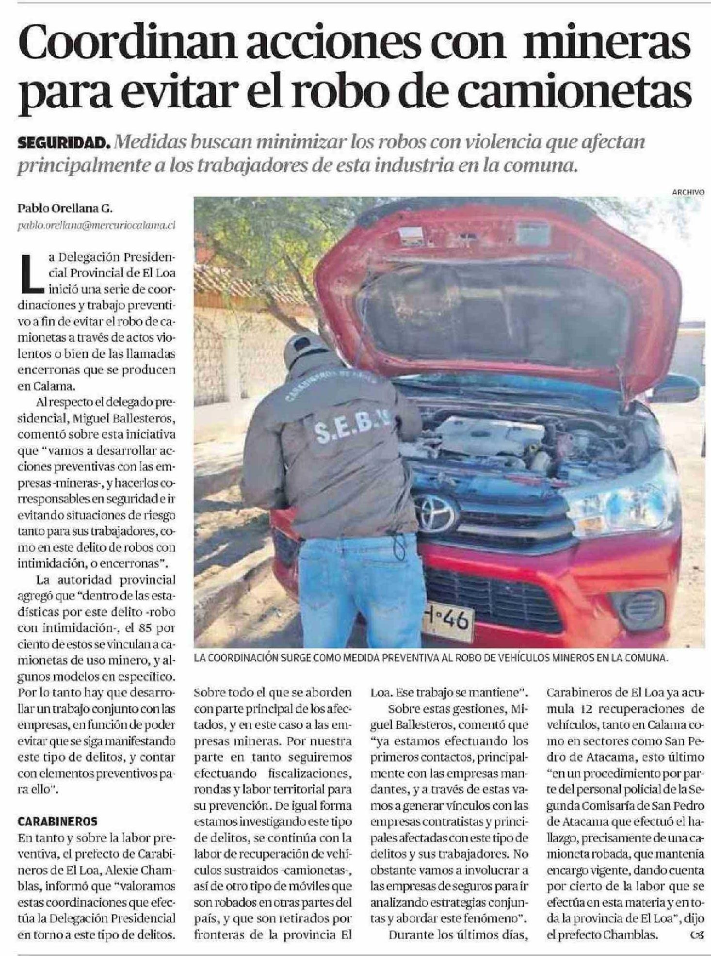 Coordinan acciones con mineras para evitar el robo de camionetas