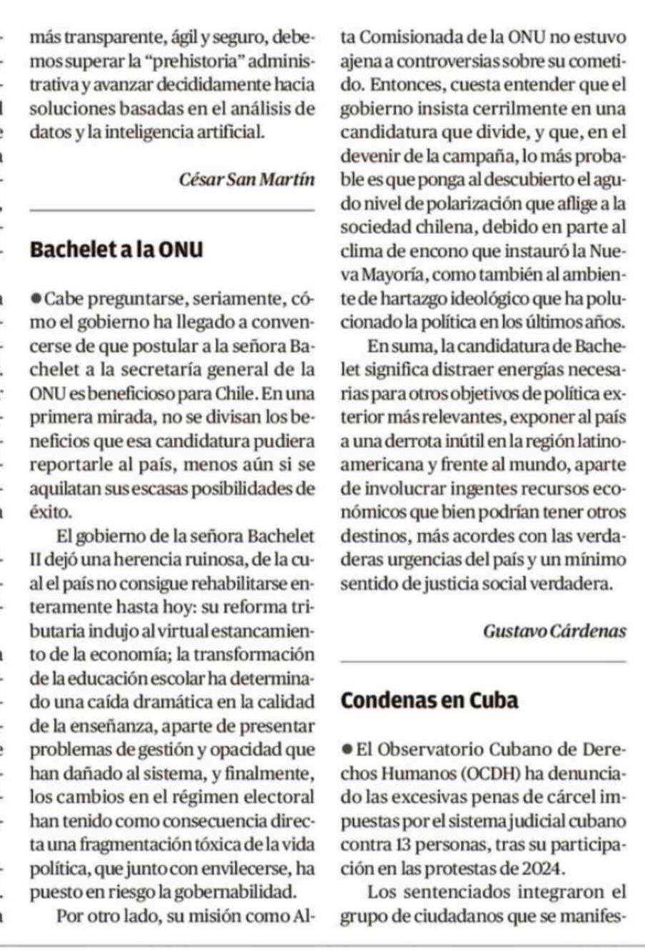 Cartas: Bachelet a la ONU