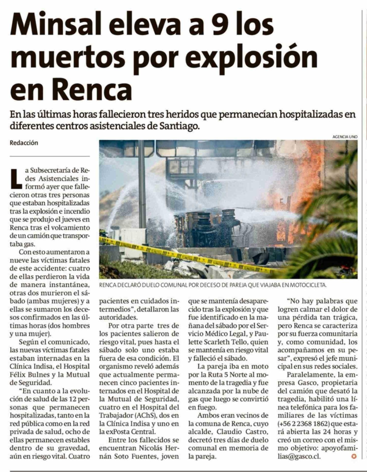 Título: Minsal eleva a 9 los muertos por explosión en Renca