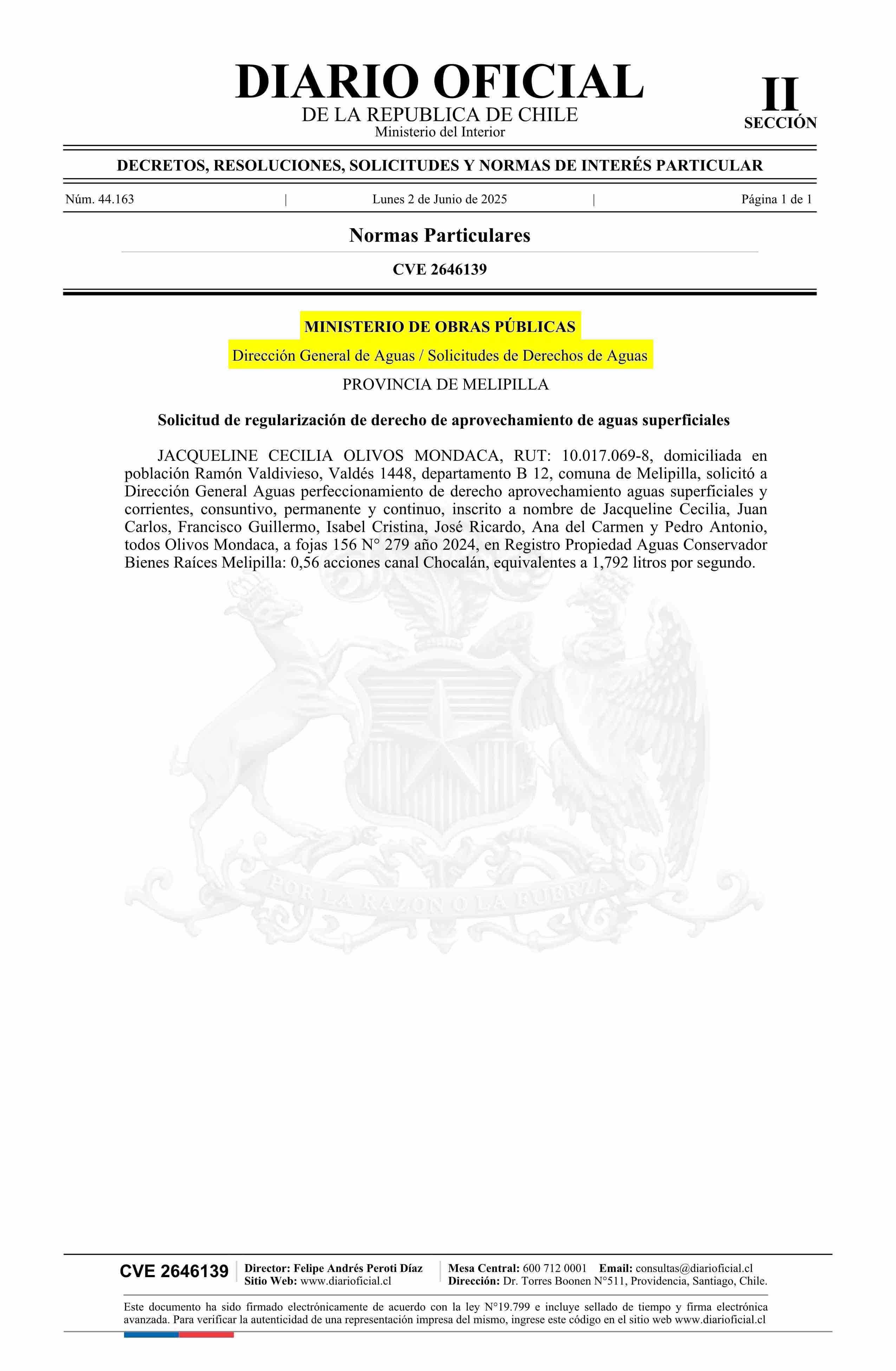 Diario Oficial Edición Electrónica (Diario Oficial de Chile - 2 Normas Particulares)