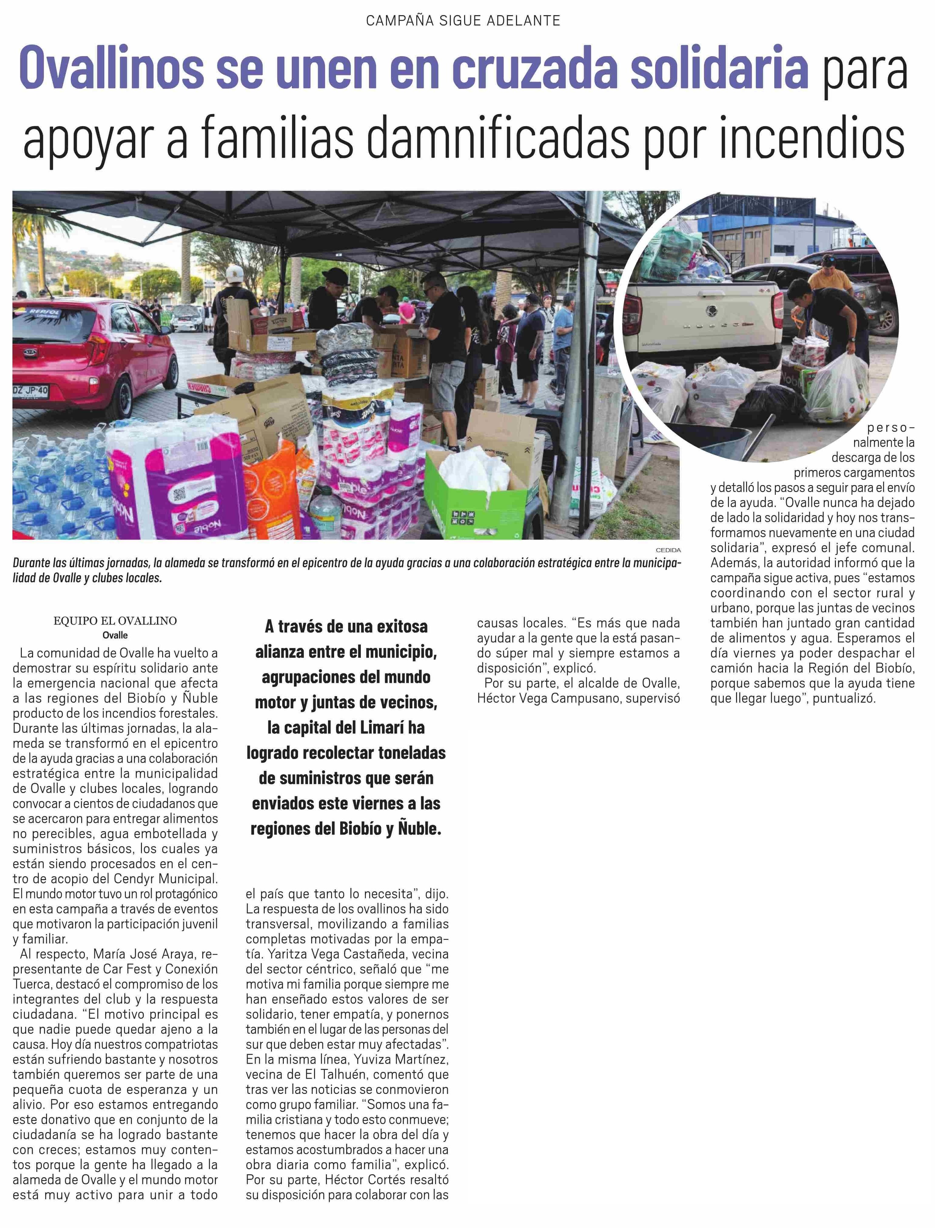 Ovallinos se unen en cruzada solidaria para apoyar a familias damnificadas por incendios