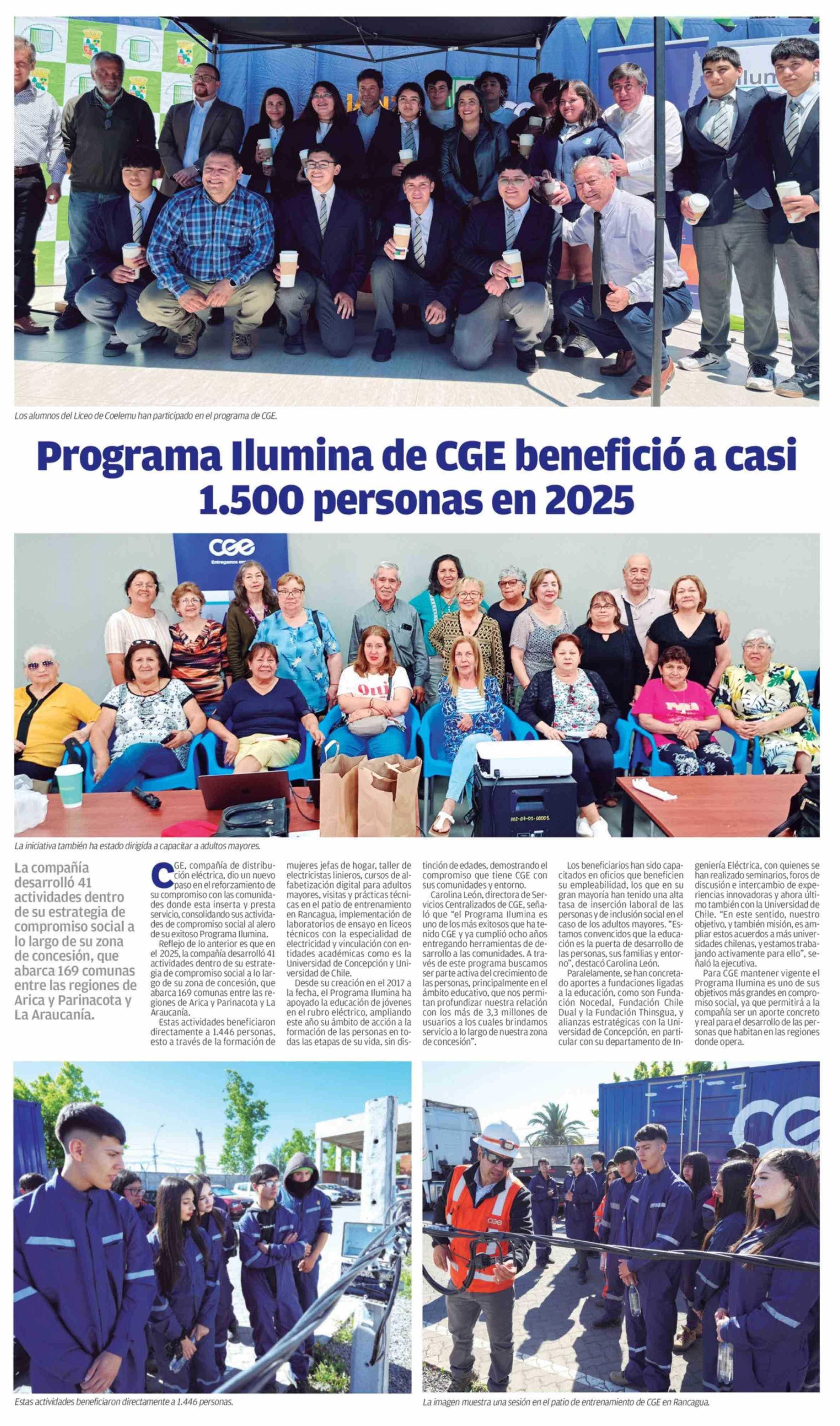 Programa Ilumina de CGE benefició a casi 1.500 personas en 2025