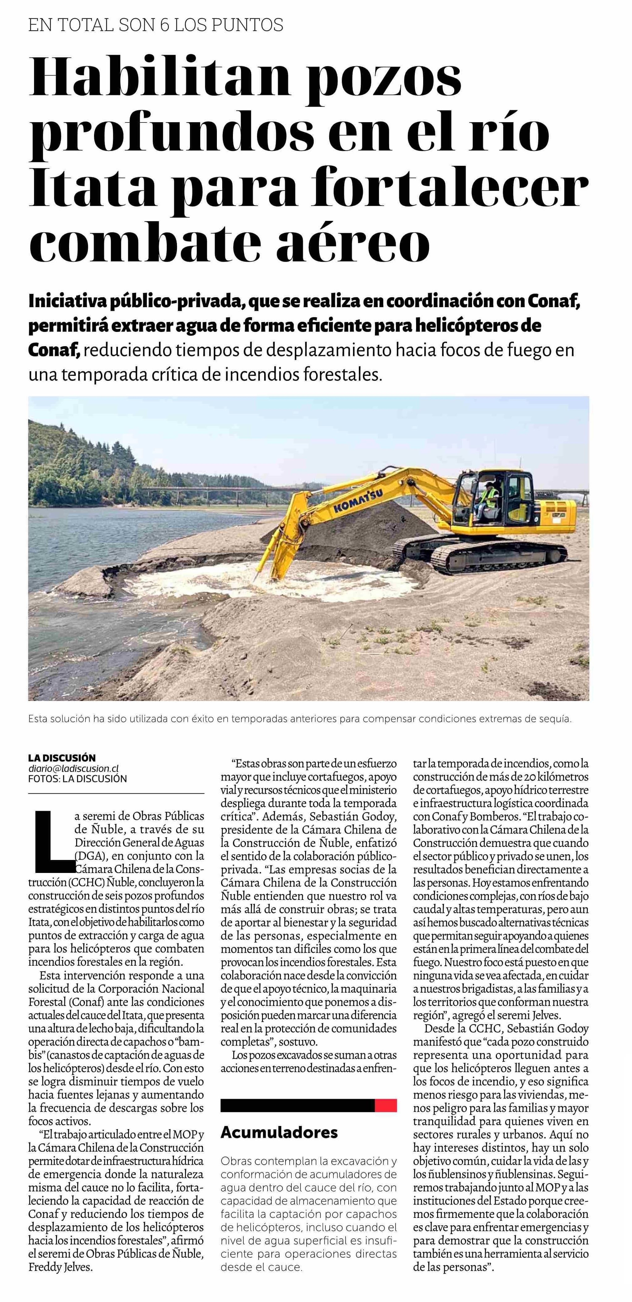 Habilitan pozos profundos en el río Itata para fortalecer combate aéreo