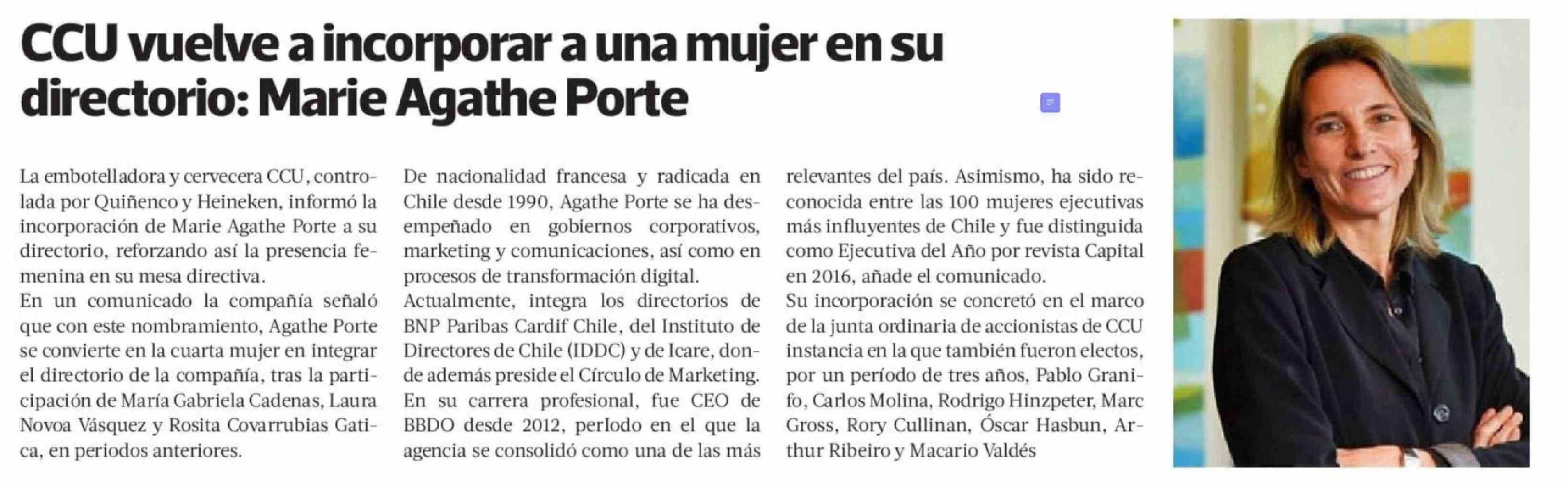 CCU vuelve a incorporar a una mujer en su directorio: Marie Agathe Porte