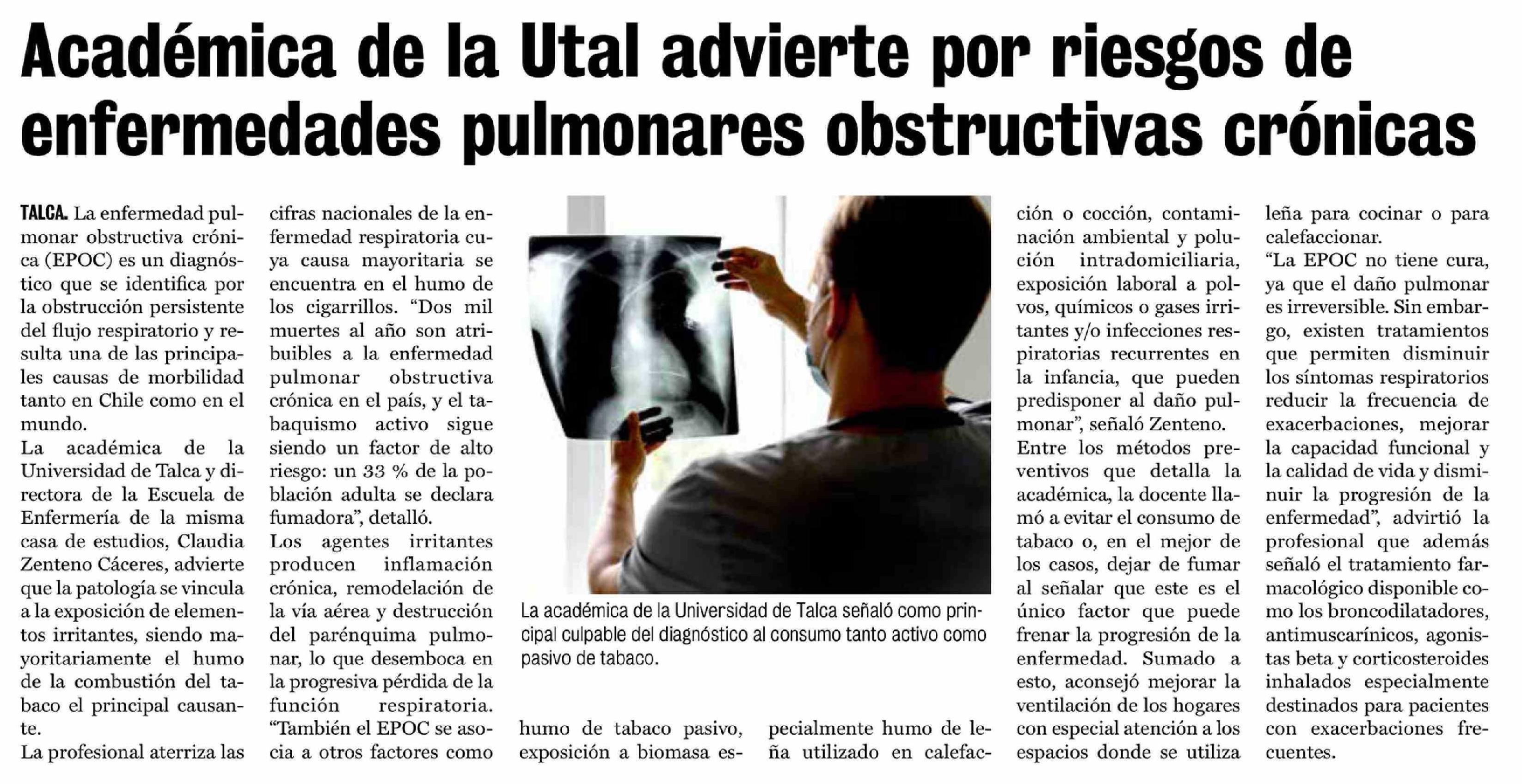 Académica de la Utal advierte por riesgos de enfermedades pulmonares obstructivas crónicas