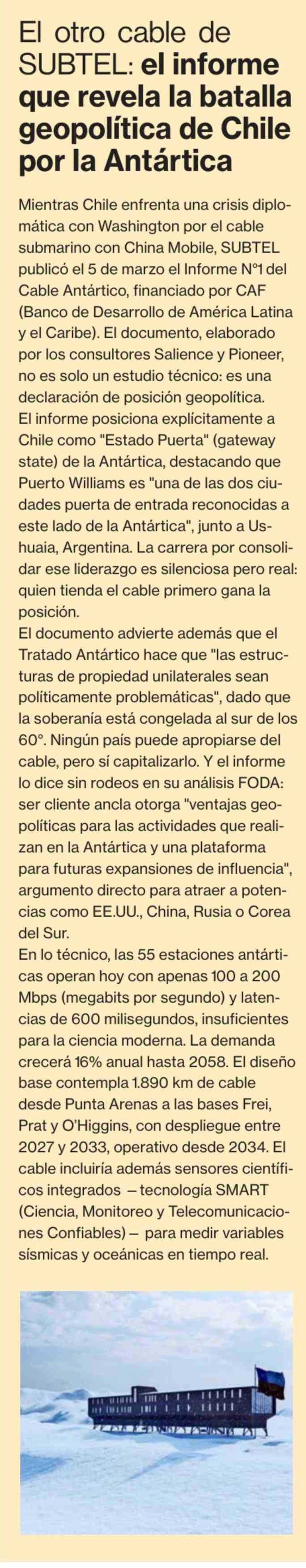 El otro cable de SUBTEL: el informe que revela la batalla geopolítica de Chile por la Antártica