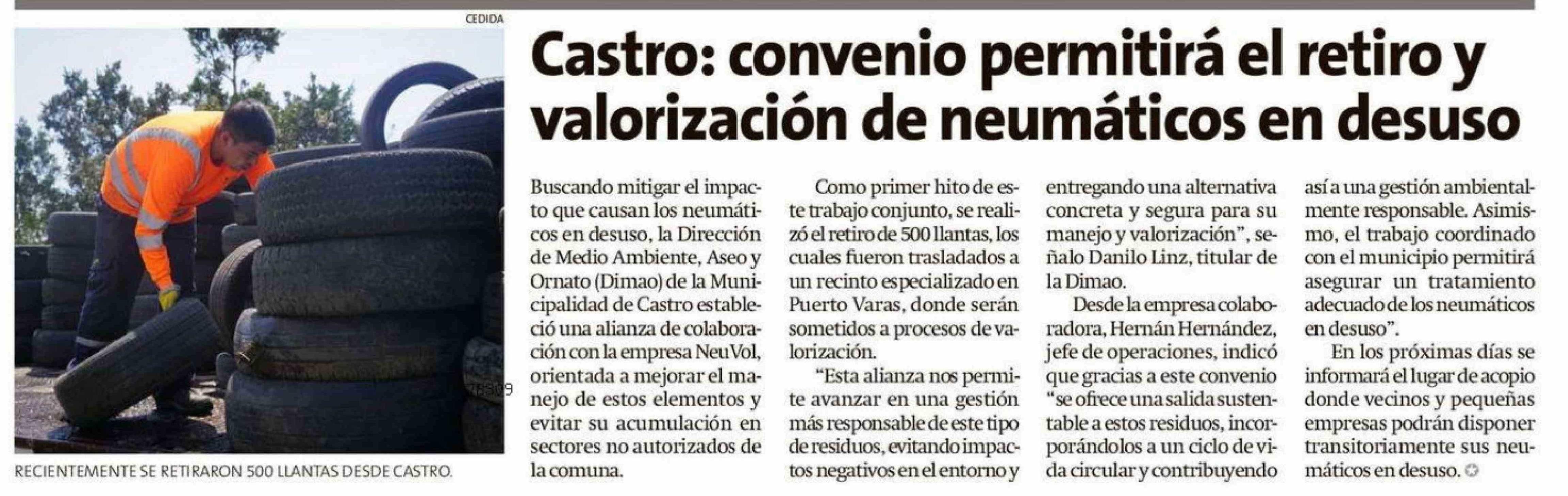 Castro: convenio permitirá el retiro y valorización de neumáticos en desuso